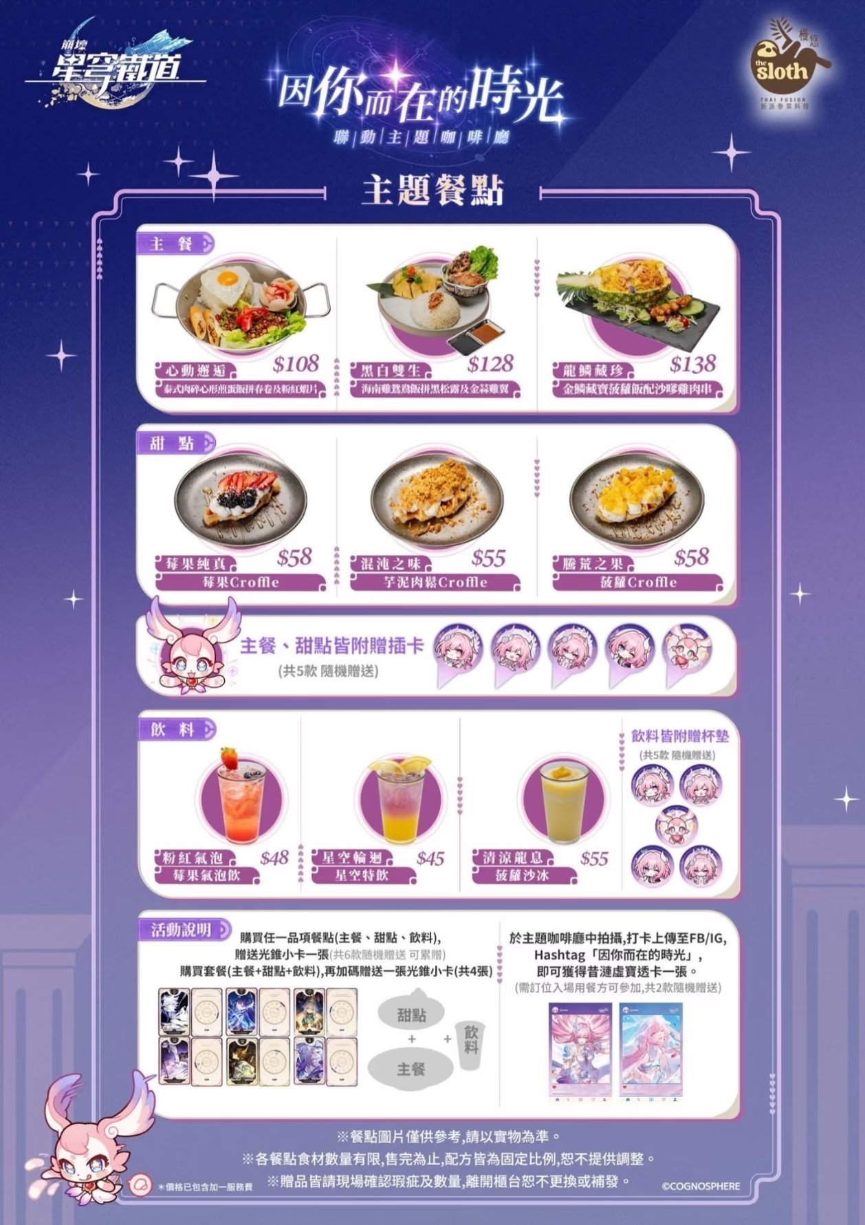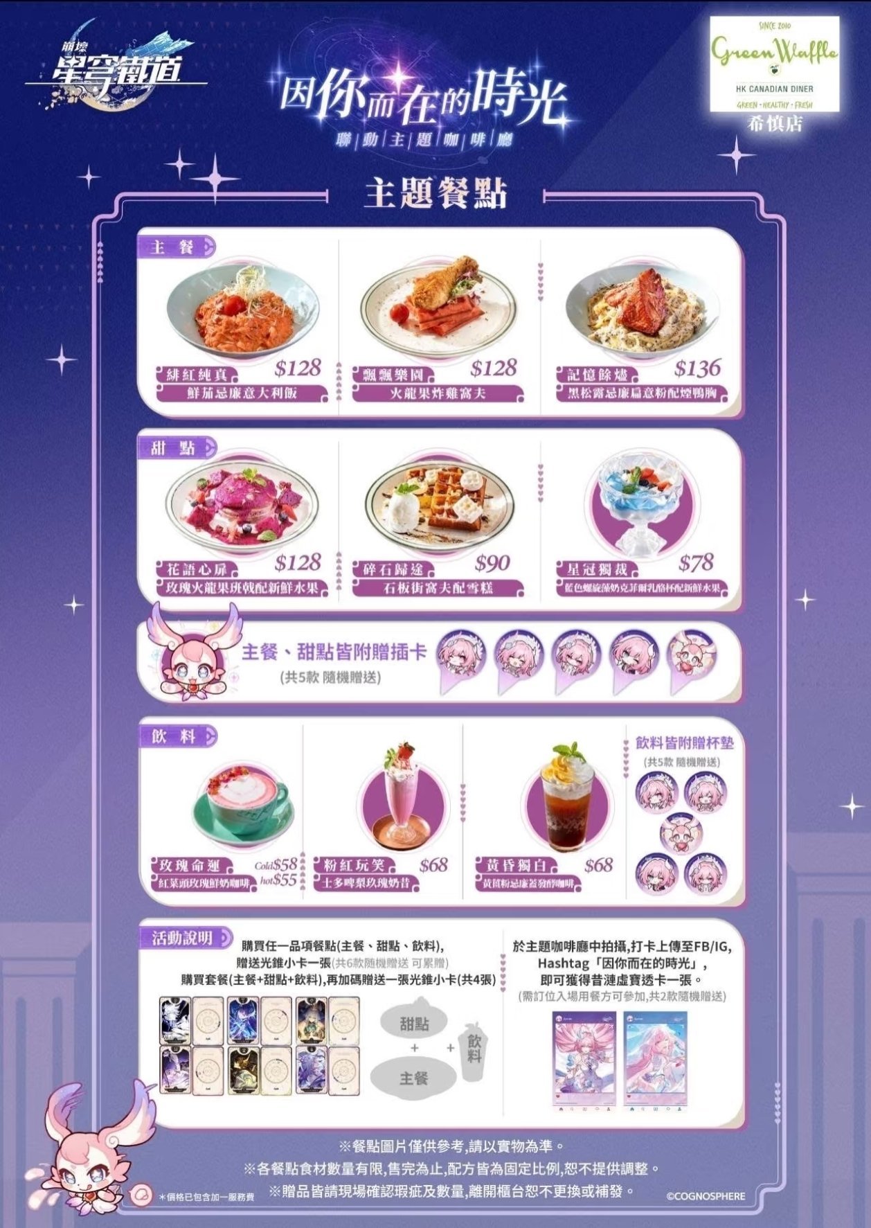 《崩壞:星穹鐵道》與 OU-EN CAFE 合作,推出「因你而在的時光」聯動主題咖啡廳活動。活動將在臺灣和香港兩地舉辦,提供聯動主題餐點、限定周邊商品以及多種消費贈品。
