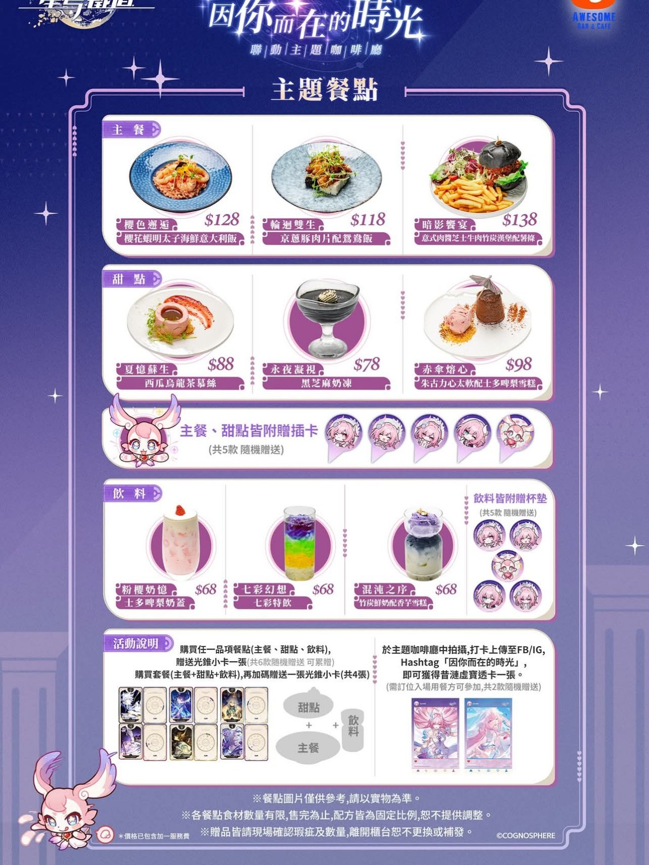 消費主餐或甜點,獲得主題系列插卡1張(共5款,隨機)。