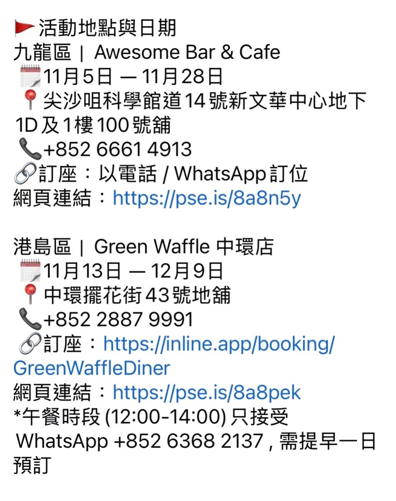 活動日期: 11月5日 — 11月28日(只有九龍區是這樣)