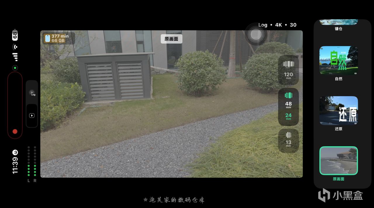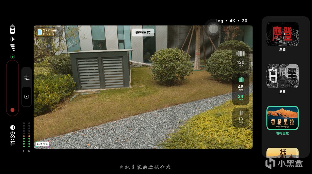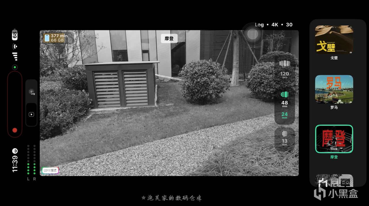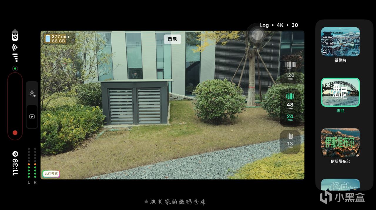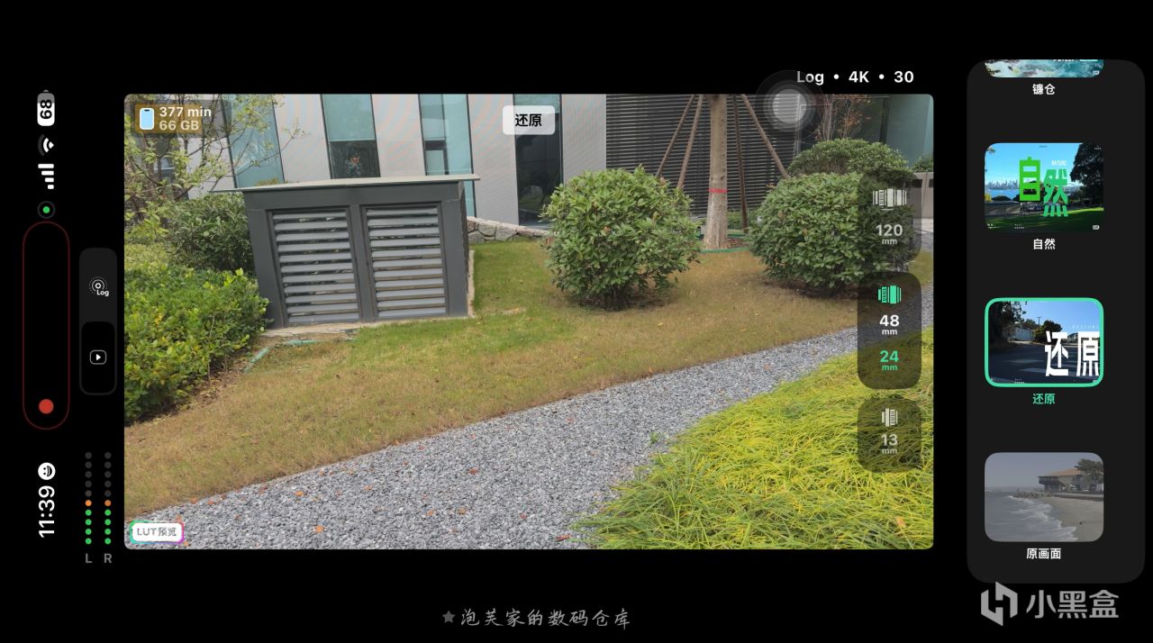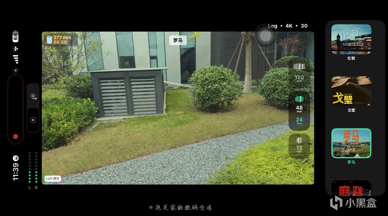 它最核心的亮点当属Log 直出 + 实时 LUT功能,拍摄 Log 格式视频时自动套用专业 LUT,让创作者在拍摄过程中就能实时看到电影级色彩的画面,真正实现 所见即所得?