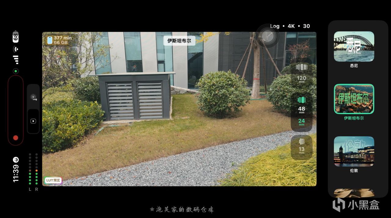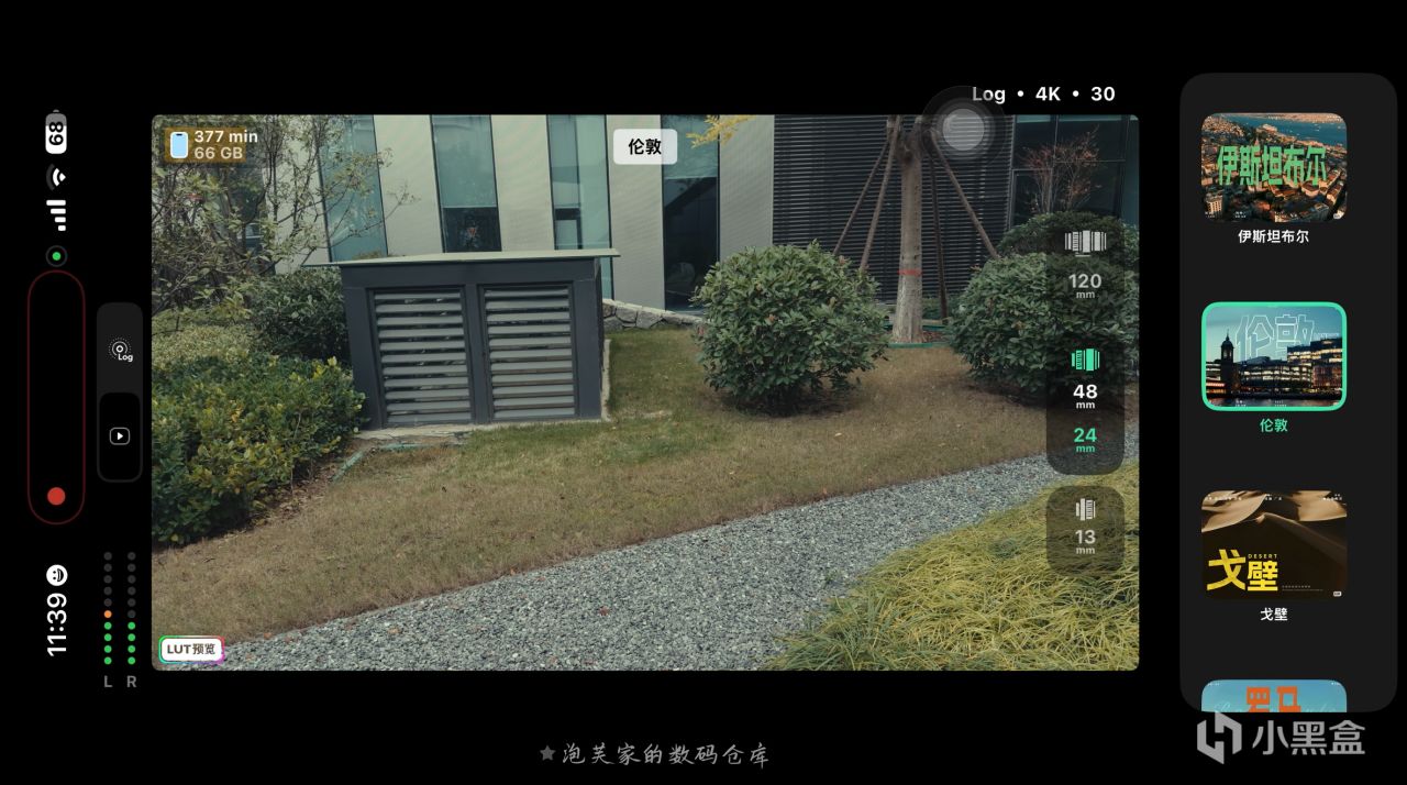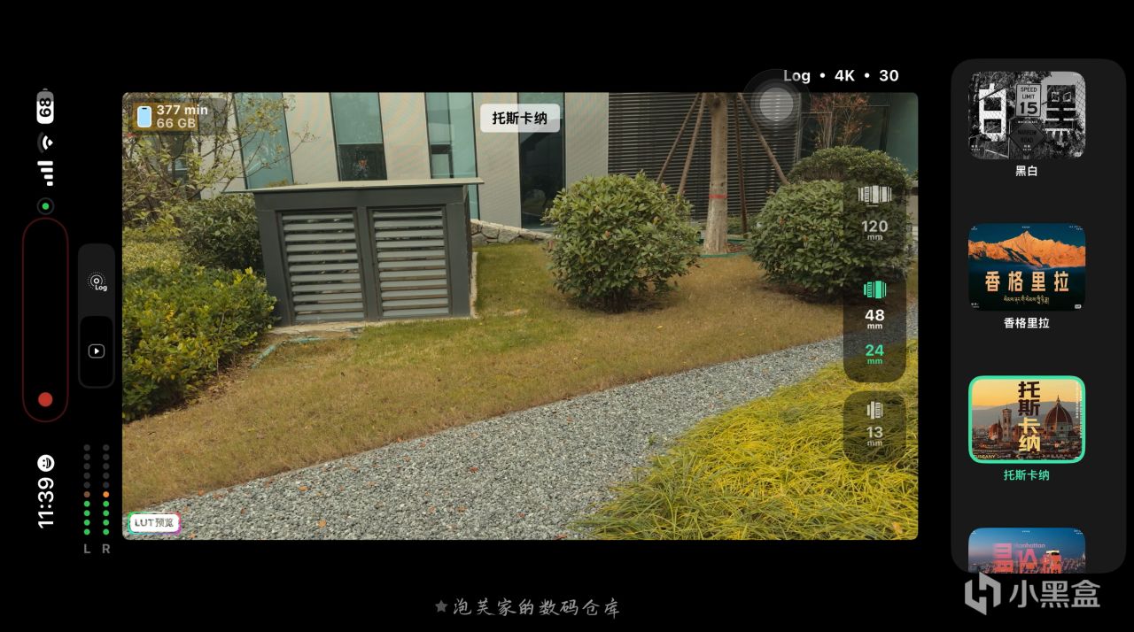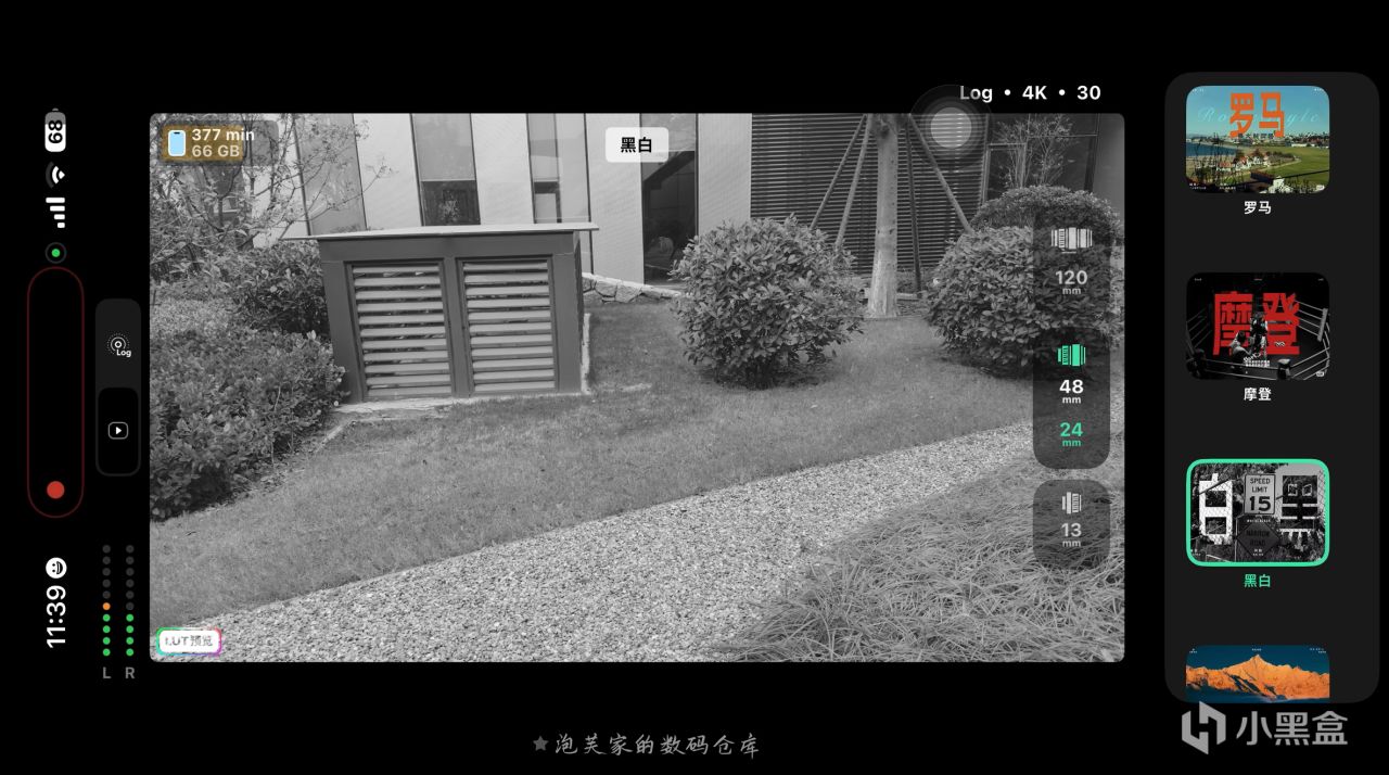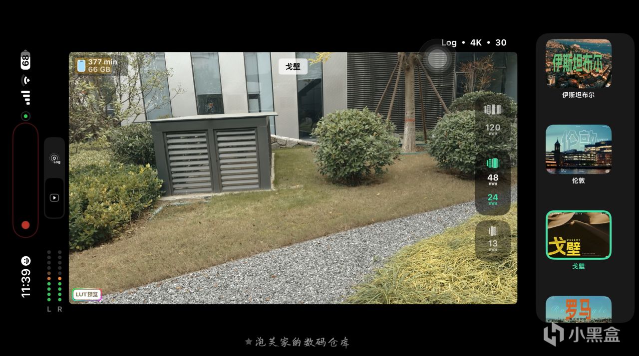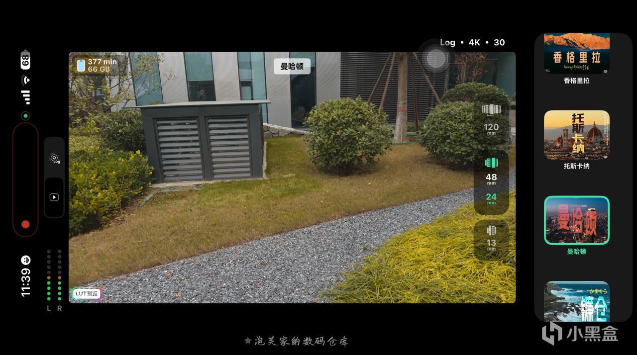 它最核心的亮点当属Log 直出 + 实时 LUT功能,拍摄 Log 格式视频时自动套用专业 LUT,让创作者在拍摄过程中就能实时看到电影级色彩的画面,真正实现 所见即所得?