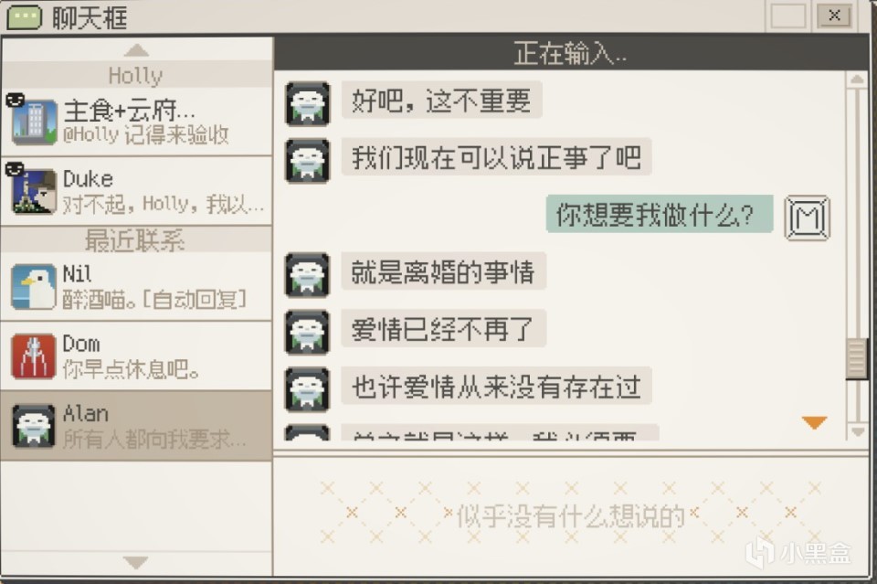 然而,因为游戏的结尾剧情展开脱节,本来可以深挖的部分浅浅收场。最后几个价值问题甚至是固定的答案,让人膈应,不太推荐四斋外的人士购买。