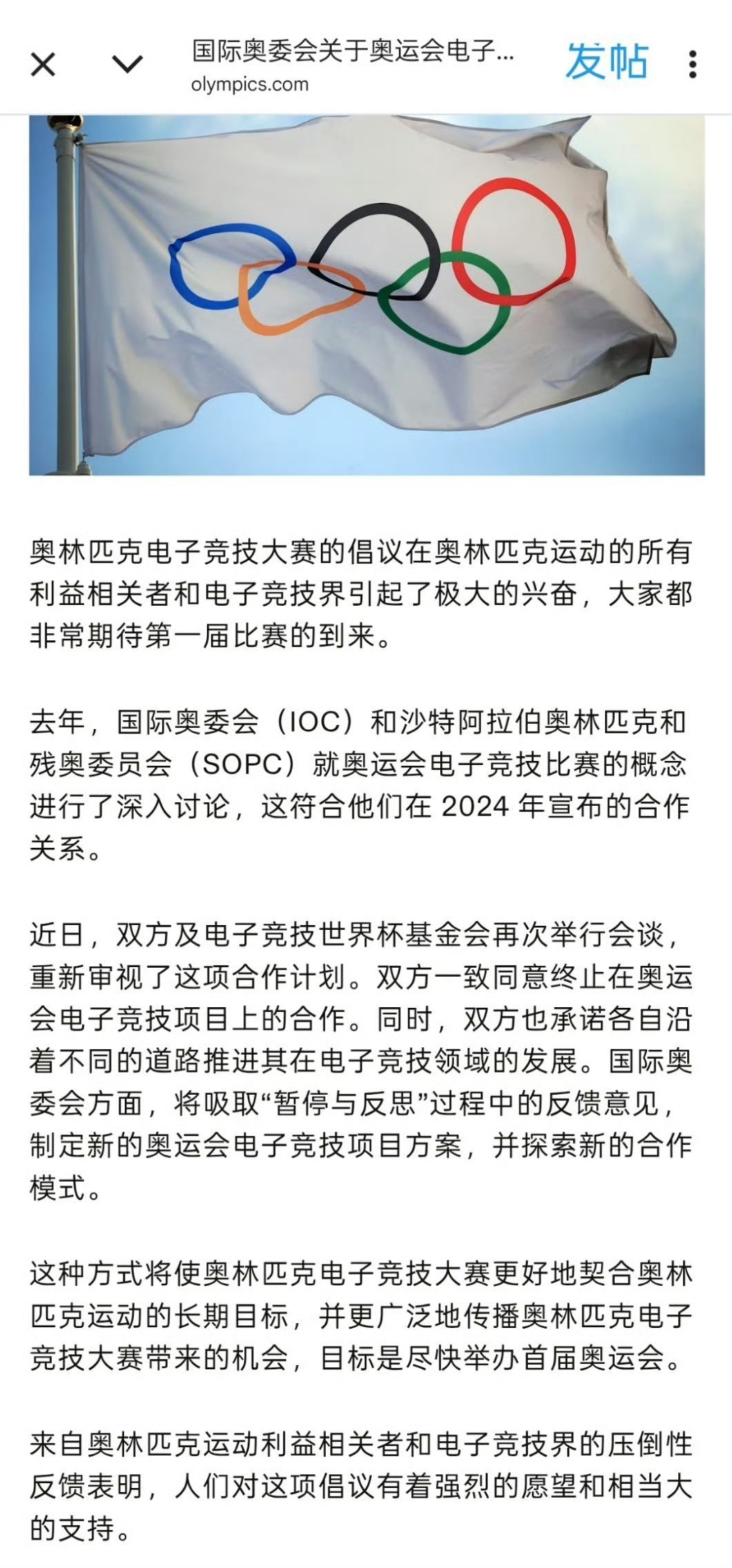 国际奥委会发布关于奥运会电子竞技比赛的声明。原文大意如下:
