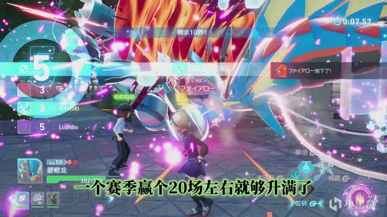 和傳阿區別最大的一點是,ZA是支持聯機對戰的,玩家需要在賽季中從Z級打到A級。第一賽季的K級獎勵是甲賀忍蛙進化石,之後兩個賽季會分別送出妖火紅狐和布里卡隆進化石。聯機對戰並非傳統的1對1模式,而是4人混戰,擊倒寶可夢最多的玩家即爲第一名。雖然混戰形式降低了策略性,相對的趣味性倒是不錯,敵人打得正酣時,我暴鯉龍一個飛空兩個都收了的情況偶有發生,場景中也會不時掉落Mega能量珠或是強化、回血道具,也算是能左右戰局。就是打到C級後環境內針對暴鯉龍的十萬伏特和雷電拳幾乎是人手一個了,導致暴鯉龍沒Mega前跟個脆皮似的,受此影響盔甲鳥的生存環境也岌岌可危,所以對戰的話我其實不太推薦用暴鯉龍和盔甲鳥,反倒是大鋼蛇經常有些意外之喜。雖然有着所謂深度不夠的小問題,但是玩起來足夠有趣,一個賽季贏個20場左右就夠升滿了,和現在射擊遊戲通行證動不動幾十小時才能打滿比,倒也稱不上什麼負擔。