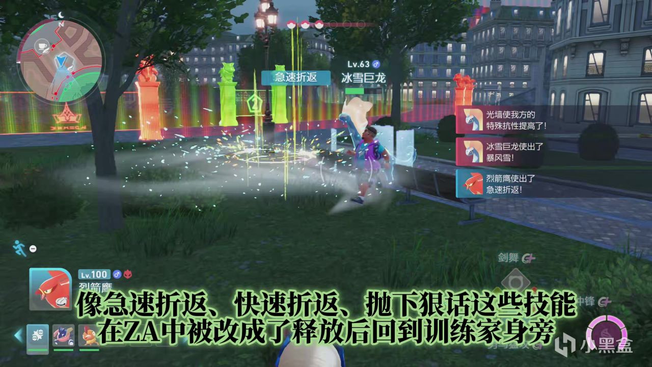 像急速折返、快速折返、拋下狠話這些技能在ZA中被改成了釋放後回到訓練家身旁,在攻擊的同時還附帶調整位置躲避攻擊的功能,我認爲是比較必要的,就是級別對戰裏充斥着各種高種族寶可夢(都學不會),導致這些技能有些難得一見,在通關過程中算是相當好用,我就喜歡Mega忍蛙上去放個暗襲要害接快速折返再來個飛水手裏劍,甚至讓我有了種在打Combo的爽感。