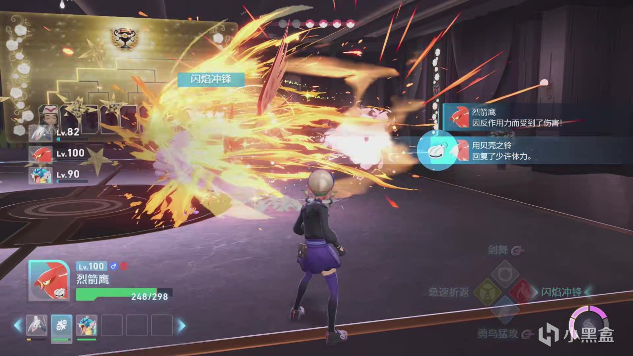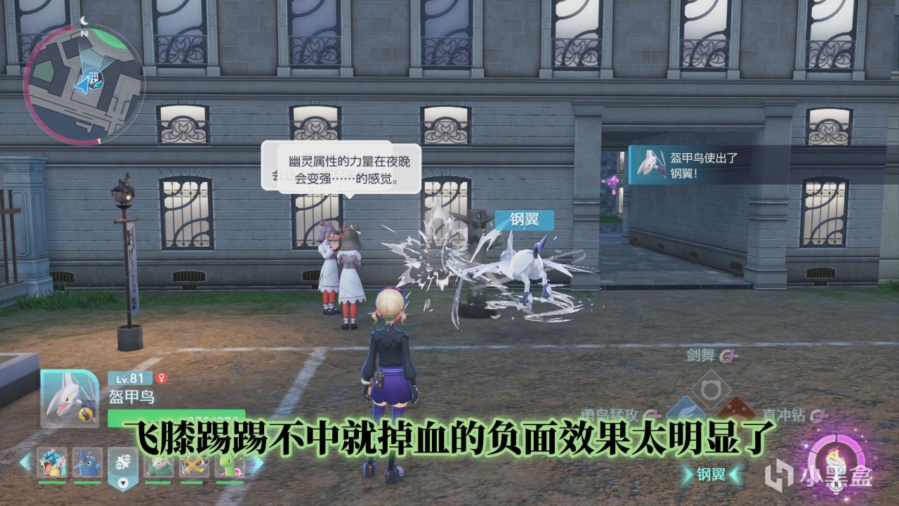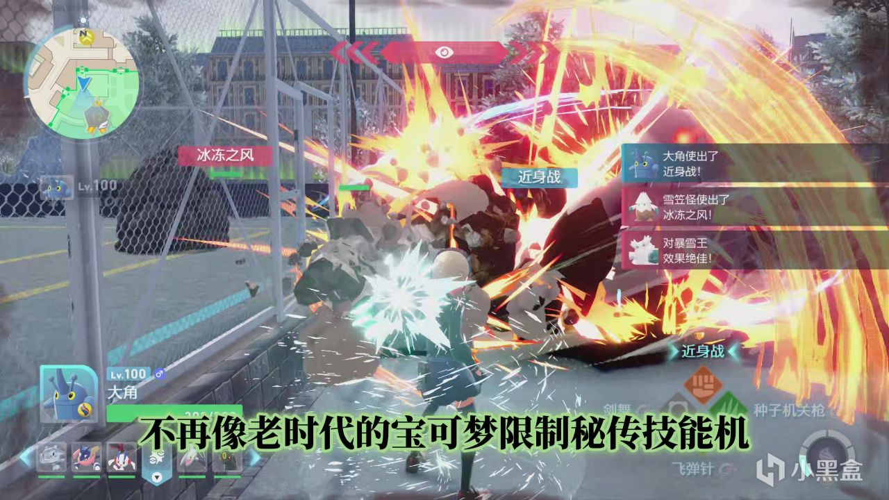 大部分物攻技能比如鋼翼、咬碎在釋放後,寶可夢會走到敵人面前再進入釋放流程,本作刪掉了命中率,所以各類大威力低命中的物理招式總算是有了用武之地。另一點就是飛膝踢被刪了,可能是對於這個系統下,飛膝踢踢不中就掉血的負面效果太明顯了。因此這作格鬥系的大威力招式就只剩個近身戰和爆裂拳了,可惜必定混亂的爆裂拳在這一代並不是很強力。