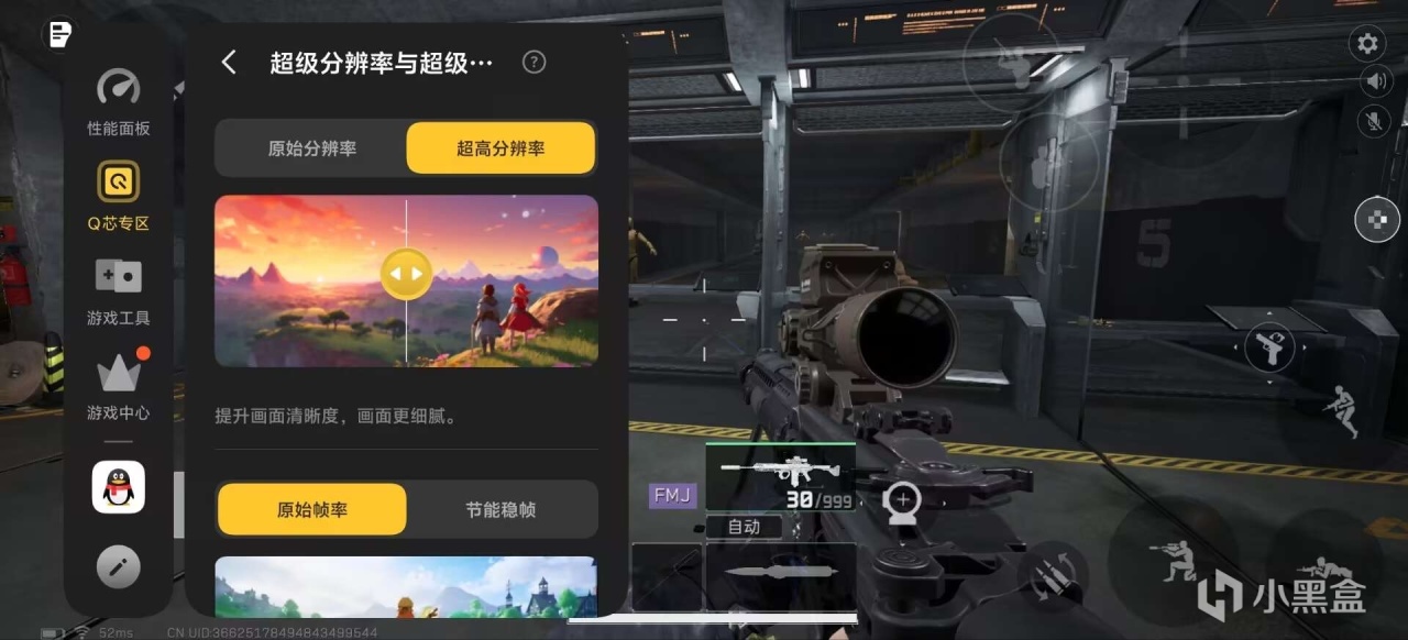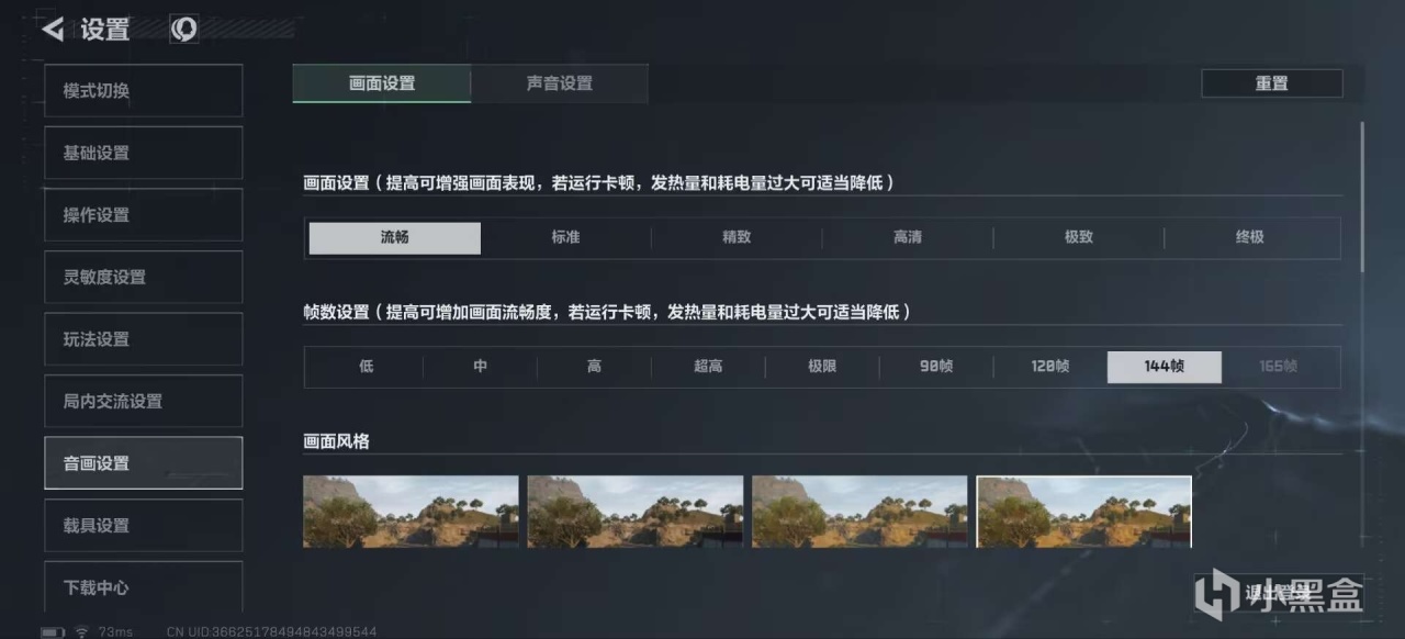 首先就是优先帧率,能多高多高,根据手机性能来,帧率越高对枪优势越大!我这里使用的IQOO15可以选到144hz还是十分不错的!