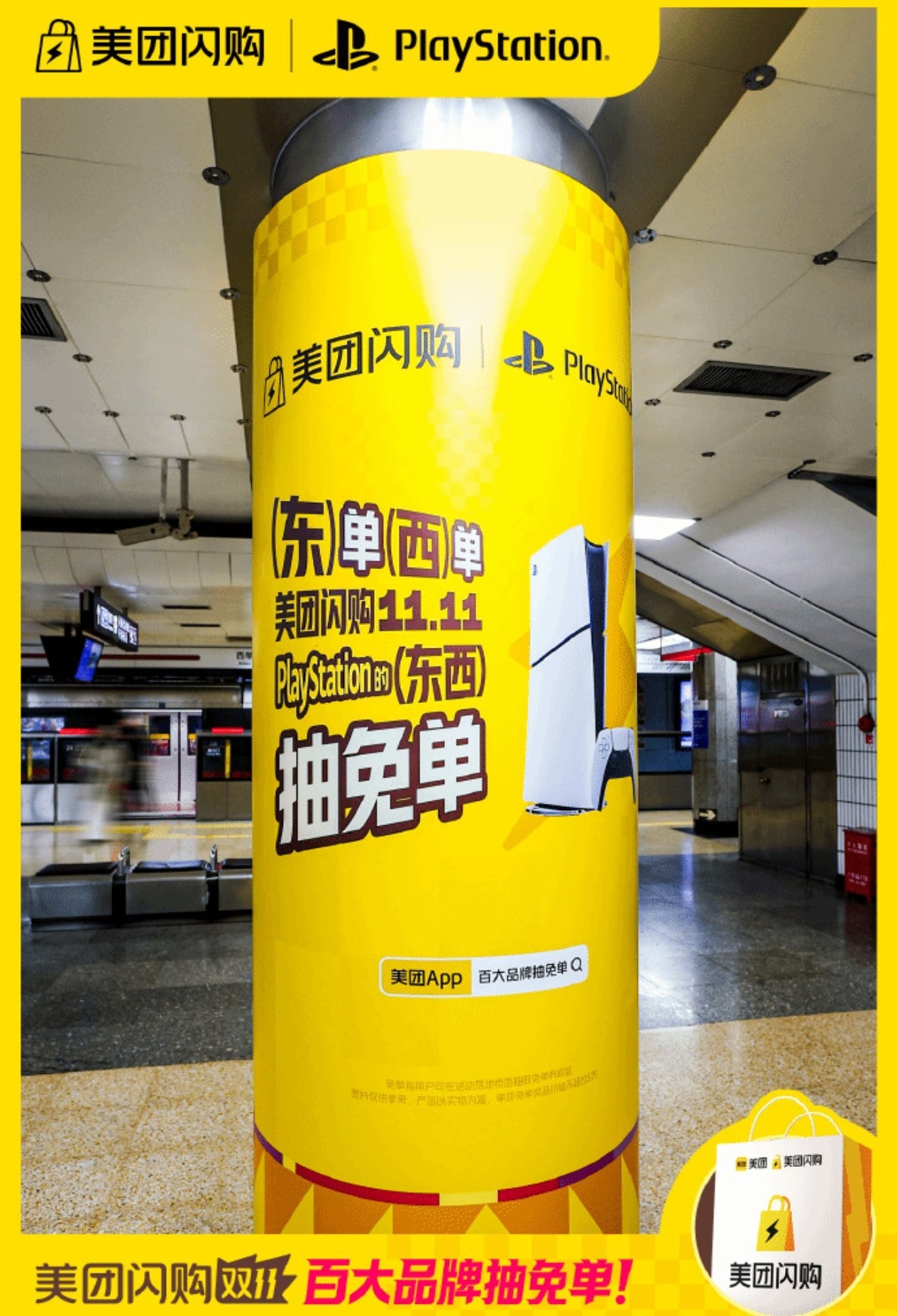 10月30日,索尼PlayStation中國官方宣佈加入美團閃購雙十一大促。10月28日至11月11日期間,用戶通過美團APP參與“百大品牌抽免單”活動,即有機會獲得PlayStation免單優惠。