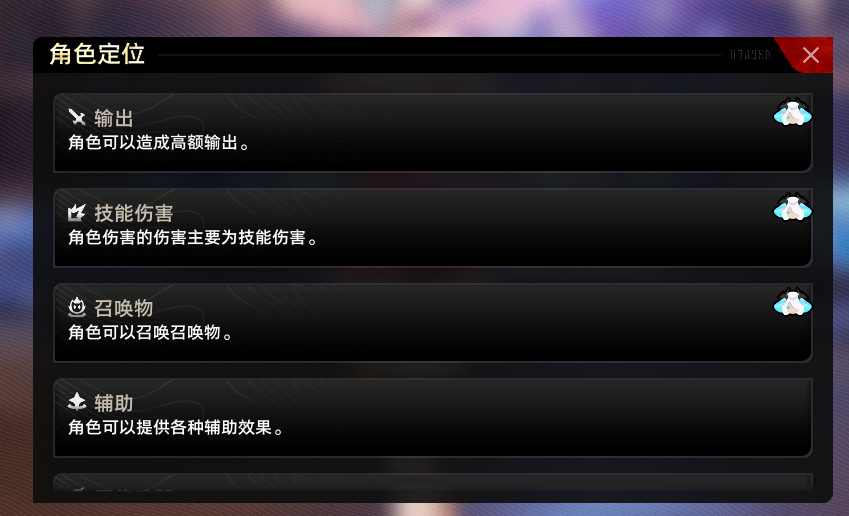 各個角色定位被藏在角色屬性的隱藏省略部分,沒解鎖的角色打開這個按鈕就能看到他的定位再決定要不要刷這個角色的碎片。