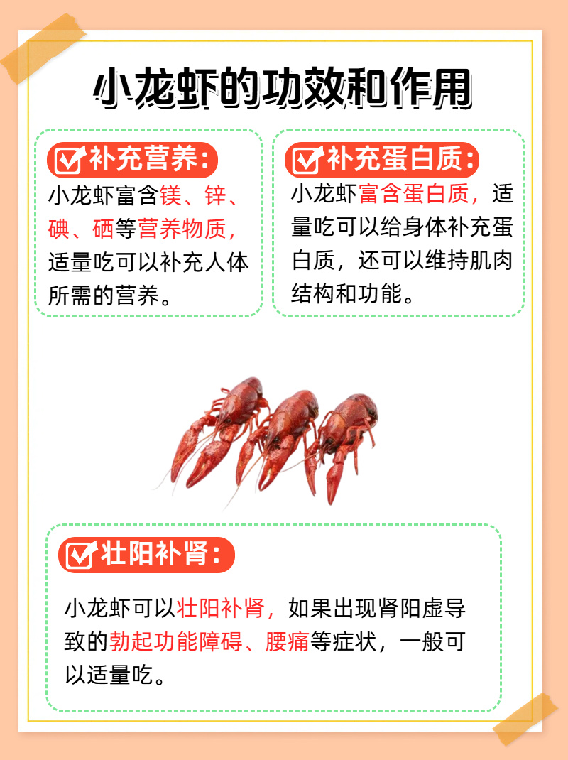 都说小龙虾营养价值高,有哪些功效和作用呢?一图告诉你。