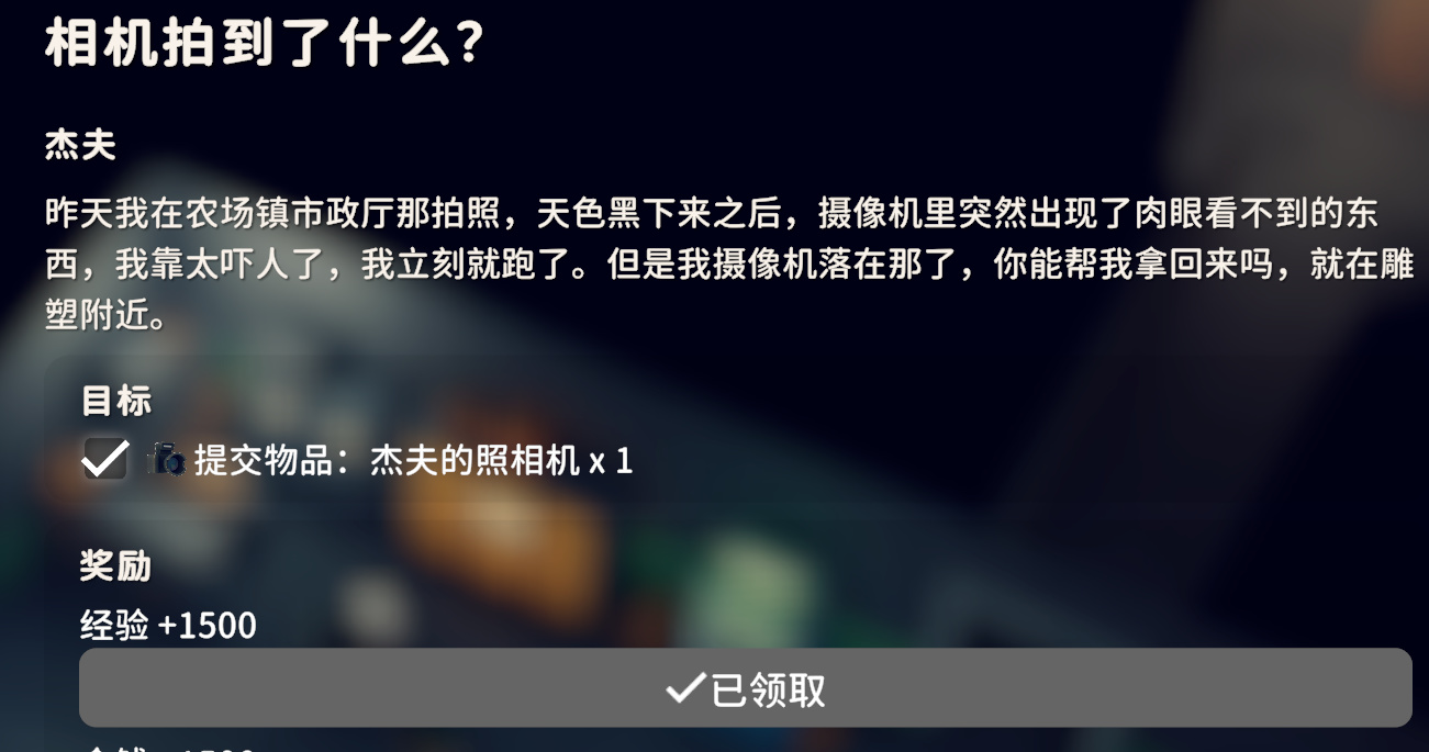 任務要求只是讓我們去農場鎮市政廳門口拿照相機,但實際策劃在第一句話的描述中埋了一個解密彩蛋。晚上過來拿相機,站在這個位置就能看到電話亭需要輸入的密碼了。這裏小二直接貼一下密碼42451、感興趣的小夥伴也可以自己過來拍照。