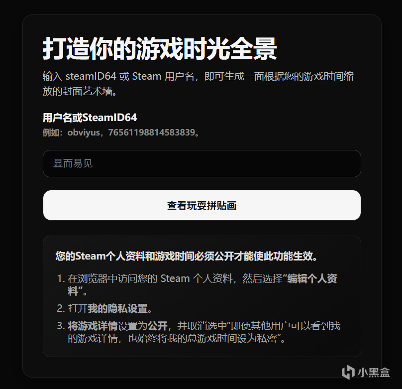 - 在 Steam 设置里把 个人资料可见,确保“已玩时长”等信息对外可见。