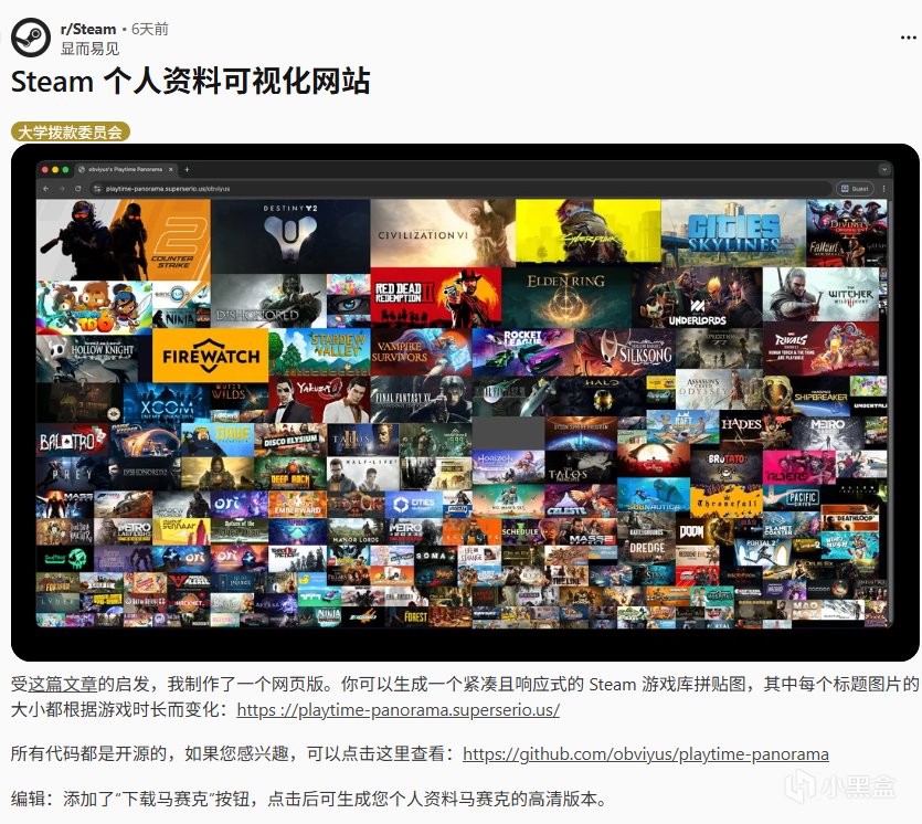 核心优点很简单:不需要登录、不需要提供密码。只要把 Steam 个人资料设为公开,把你的 SteamID(或个人资料简称)粘到在线生成器里,几秒钟就能得到一张按时长缩放的海报,方便下载和分享。因为源码公开,任何人都可以查看或自托管,隐私问题也因此得到很大程度的化解。