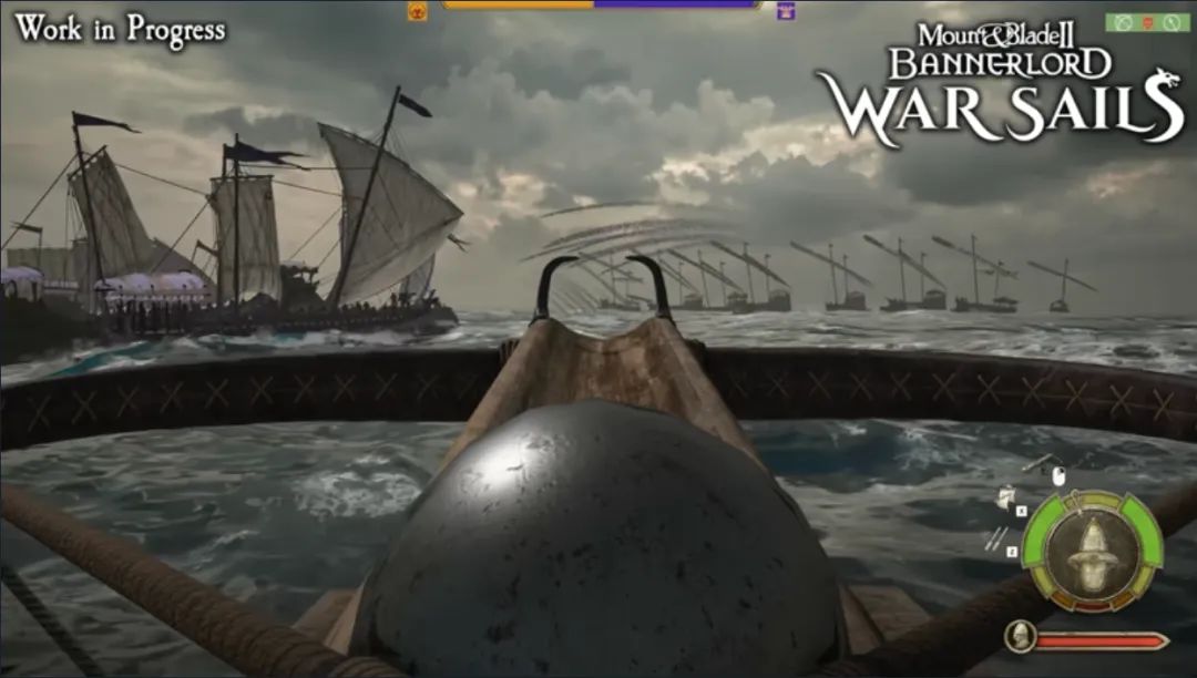 经过最初的时刻后,大多数战斗在远距离展开。如果你的船只配备了弩炮,你可以从舵位接管它。瞄准你的目标,根据弩炮类型——发射弩箭、石块或火罐,然后进行下一次机动。如果你不在舵位,你也可以直接操作武器——就像在攻城战中一样。