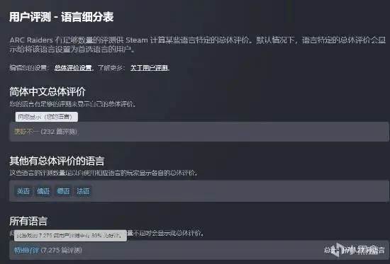 作爲一款聚焦 “搜打撤” 核心玩法的新作,《Arc Raiders》發售首日便展現出強勁號召力。Steam 官方數據顯示,遊戲在線人數峯值達到 26.4 萬人,較測試階段的 18.9 萬增長超 40%,印證了玩家對這款對抗外星機械敵人 “ARC” 的射擊遊戲的高度期待。截至發稿,Steam 平臺已累計收到 7275 條玩家評測,整體好評率穩定在 89%,斬獲 “特別好評” 評級。與全球玩家的積極反饋形成鮮明對比的是,國區玩家評價呈現明顯爭議:僅 232 條國區評測中,好評率僅爲 53%,處於 “褒貶不一” 區間。這種兩極分化的評價可能與遊戲本地化適配、玩法偏好差異等因素相關,具體原因仍需結合玩家反饋進一步觀察。