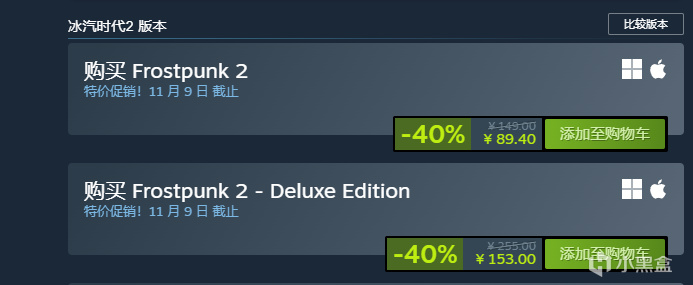 说起冰汽时代,想必很多兄弟都不陌生吧,毕竟在策略游戏这个分类中,这个IP妥妥的T0级别了,现在第二部发售,也已经有一年之久啦,游戏不仅在持续更新,这一次居然还推出了新史低!你要是原价卖,我可能真要考虑一下,但是你告诉我现在已经六折了,这波是真的有点香啊(优惠截至日期为11.9号,在小黑盒商城买其实优惠更大,可以折上折了。)