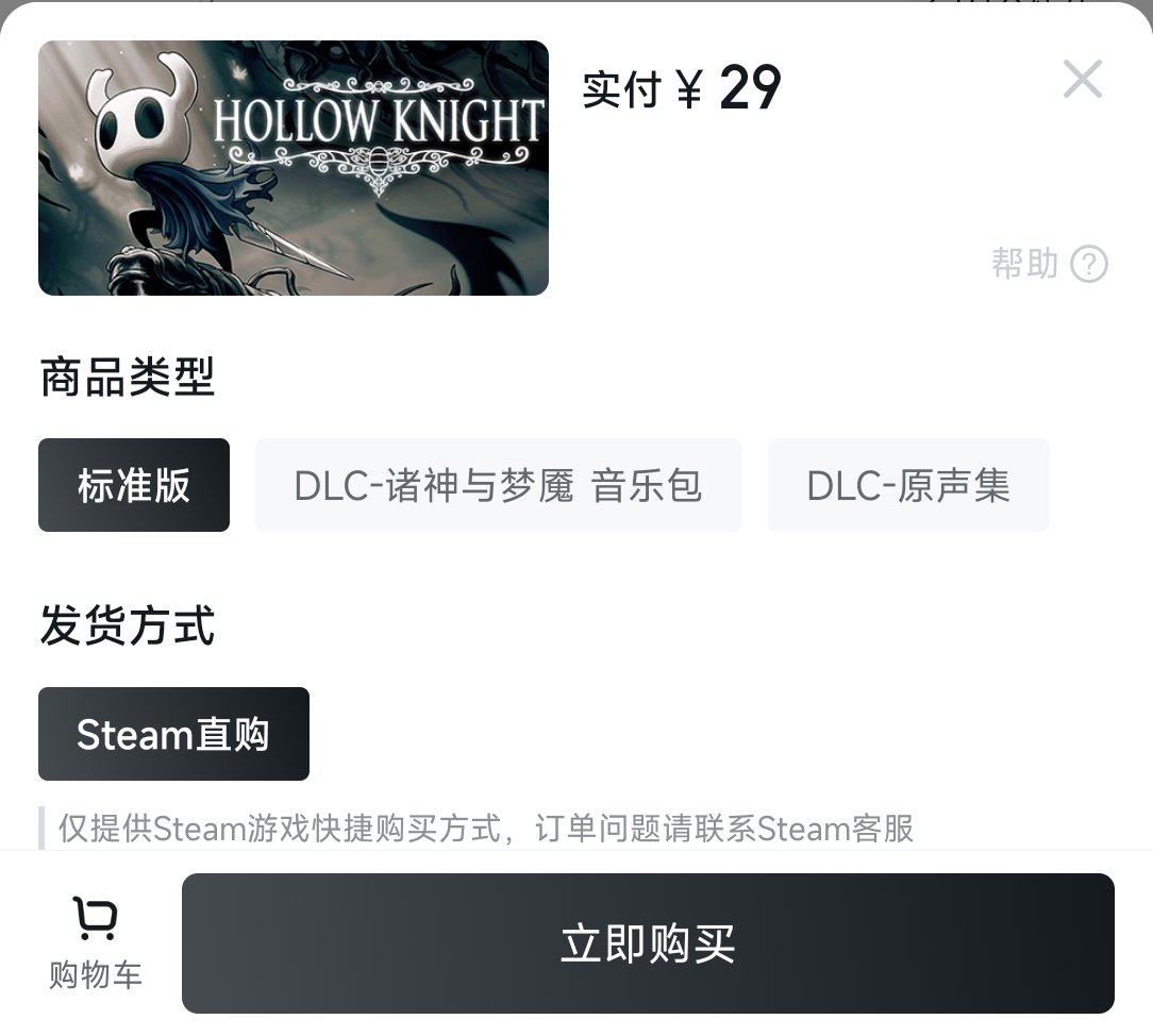 像是空洞骑士,哈迪斯这样的独立游戏。只能通过steam直购的。大家判别有没有售卖的CDK,可以到黑盒购买页面上看一下,如果只有steam直购这一个选项。那么大概率市面上是没有CDK的。