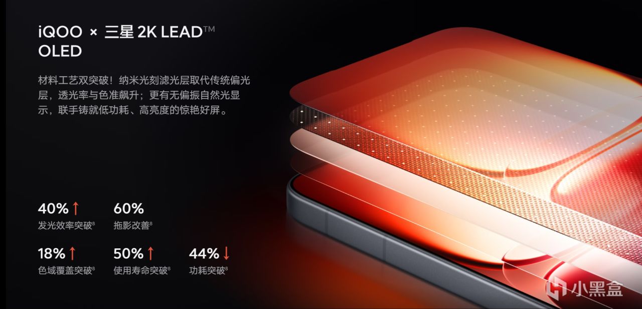拉升游戏体验的第一步,就是一块好屏幕,屏幕毫无疑问是硬件层面上,感知最强、最直接的窗口。或许是这次iQOO的需求太刁钻太苛刻,最终使用的的解决方案,是从三星和京东方两家顶级供应商,分别选调了M14发光层和CV07屏幕,组合成了iQOO所装备的LEAD OLED“2K珠峰屏”。