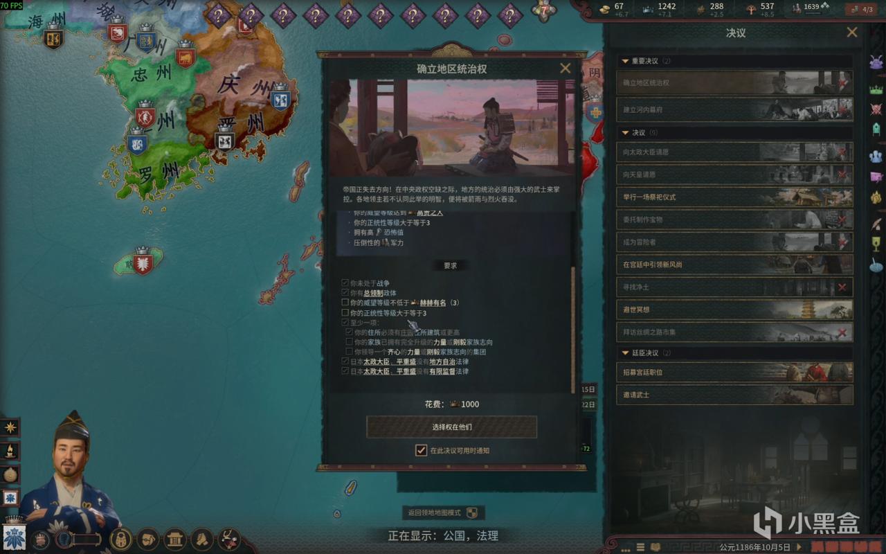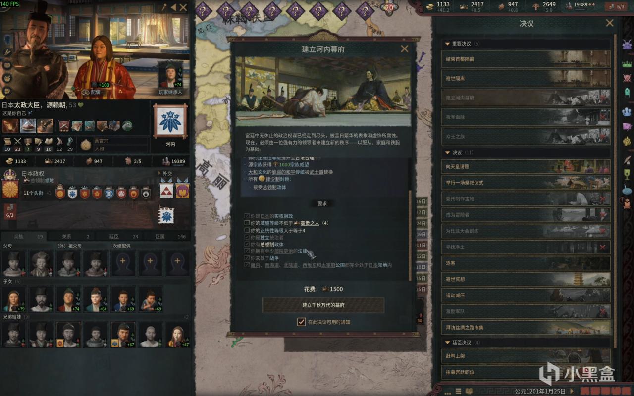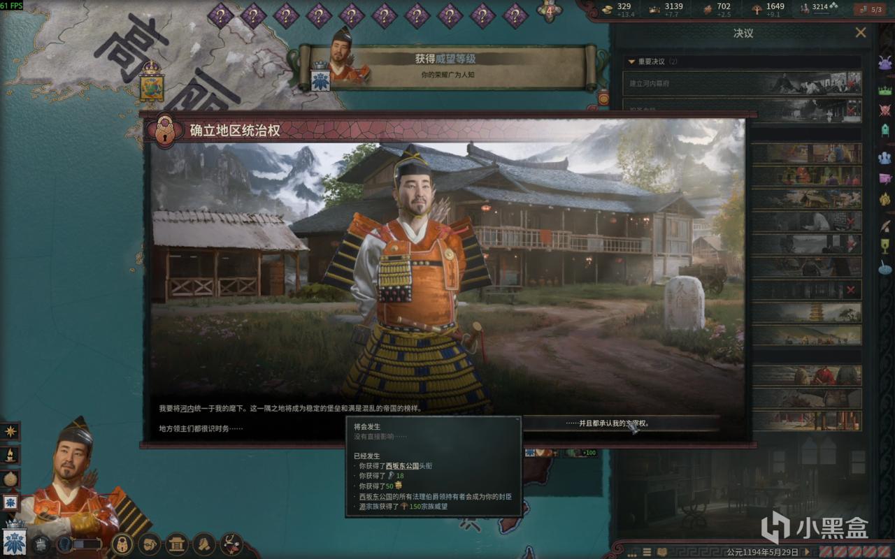 之后成立幕府的决议需要 正统四等级 威望四等级 这就是为啥我说需要很多正统和威望的缘故,因为作者我这里被卡了半天。你们提前准备的话,完成成就的时间能快不少。