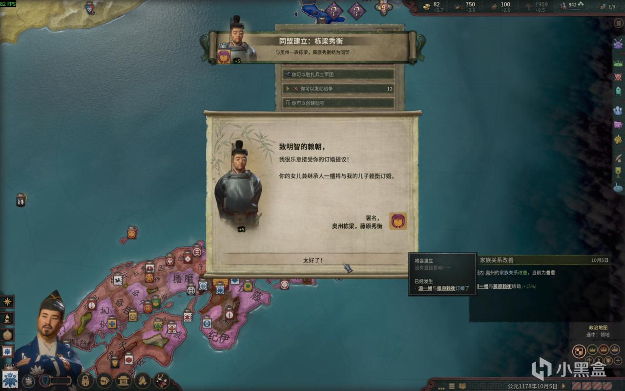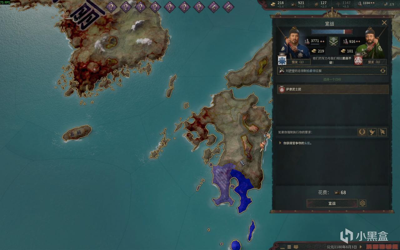 别担心,进游戏后先别跑时间,先和地图上面的 奥州一族 藤原秀衡结盟一下,他又两千多兵,在日本这一亩三分地属实是大户。