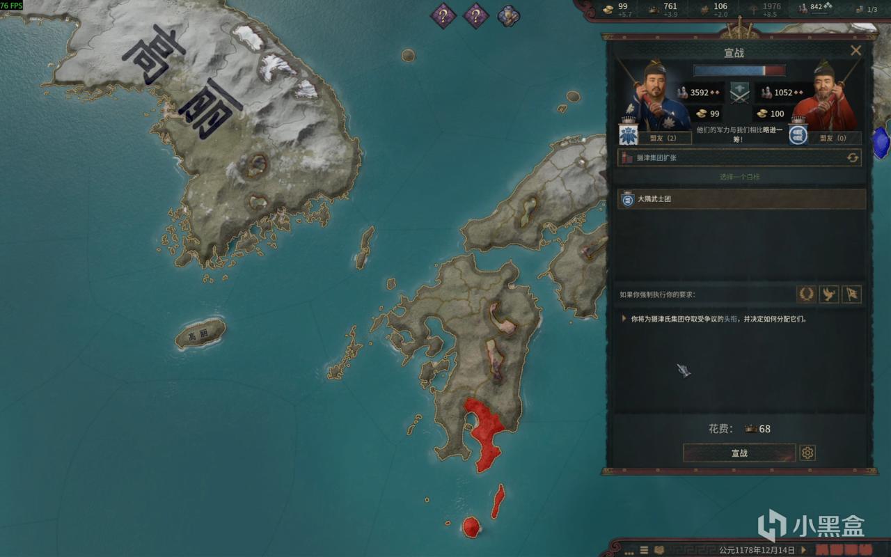 之后与九州岛上的人接壤了就可以用征服宣战借口