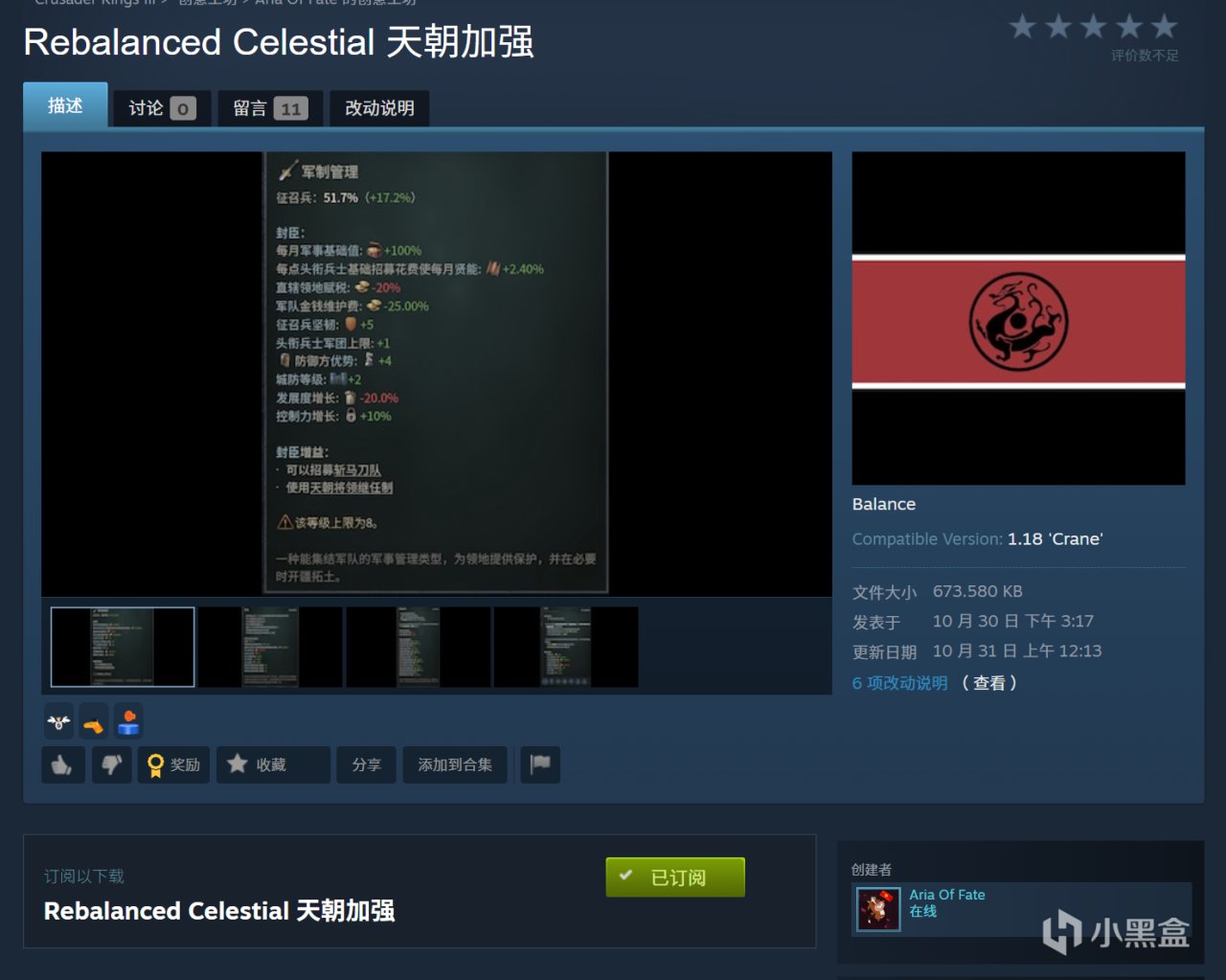 对P社的神奇数值做了修正,并修改部分细节以提升游玩体验,不兼容其它修改了王朝兴衰局势的mod。