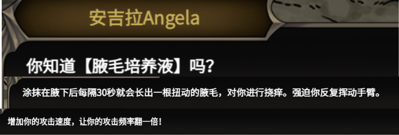 名爲腋毛培養液的道具,促進腋毛生長產生瘙癢,迫使主角反覆揮臂,從而提高攻速,這合理嗎?