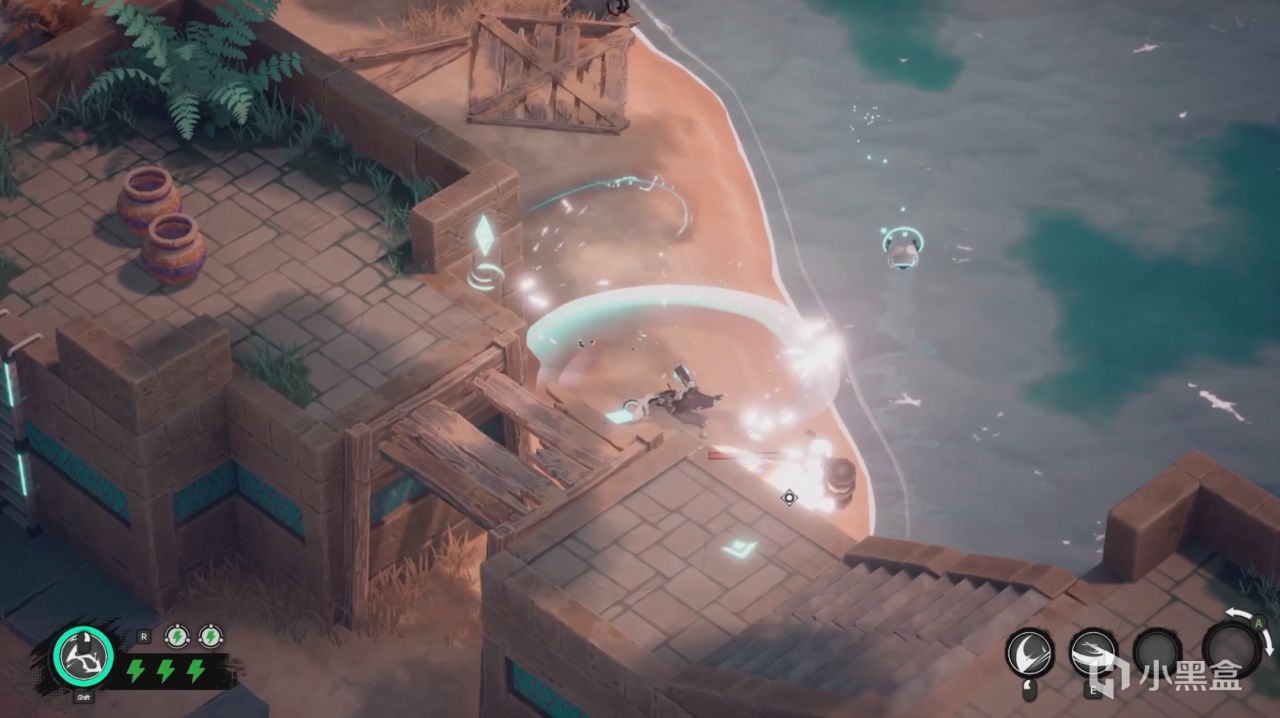 特色机制就是通过破坏地形或者将敌人攻击到残血,可以直接使用盾牌超远距离冲过去处决掉,手柄的动作反馈不错,但在数值、堆怪和UI上都有点小毛病。