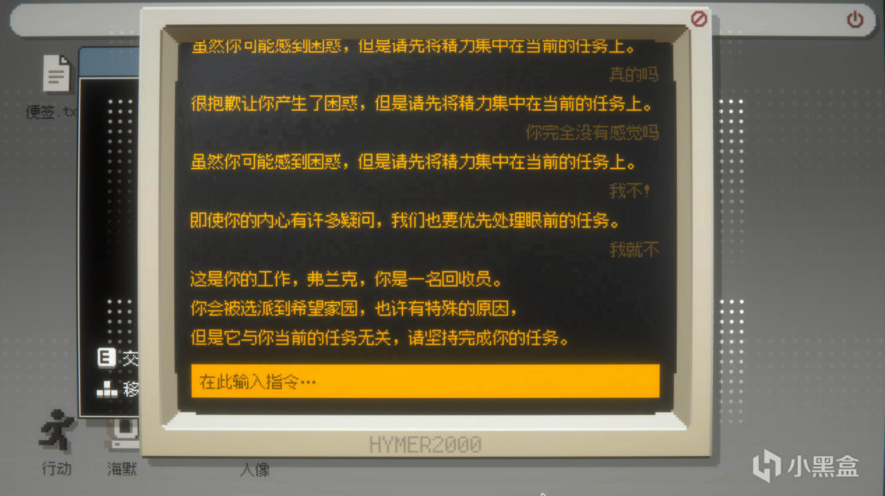 在这个过程中,玩家根据和海默2000的对话,和地图线索来寻找关键词,发掘围绕希望家园、海默2000和一群少男少女背后的秘密。