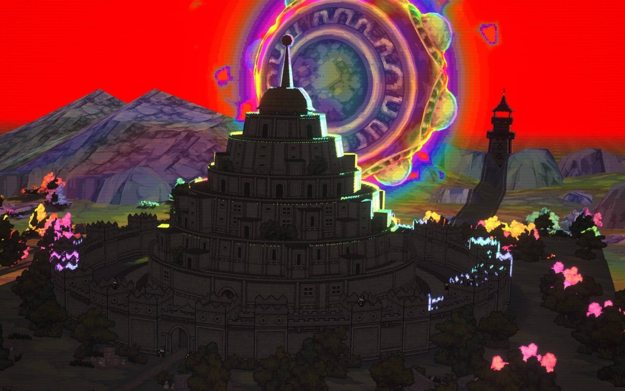一座如同大理石鑄造的巴別塔一樣的城池矗立在大地之上,相當細膩的像素畫風,結合灰撲撲的昏黃濾鏡質感,一股蕭瑟的秋風似乎掠過耳邊。