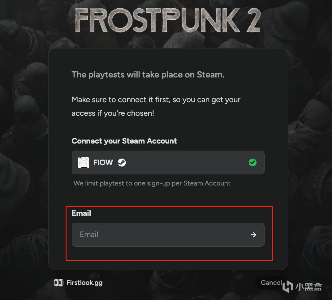 1.进入到frostpunk2.firstlook.gg该网站,点击红框内按钮