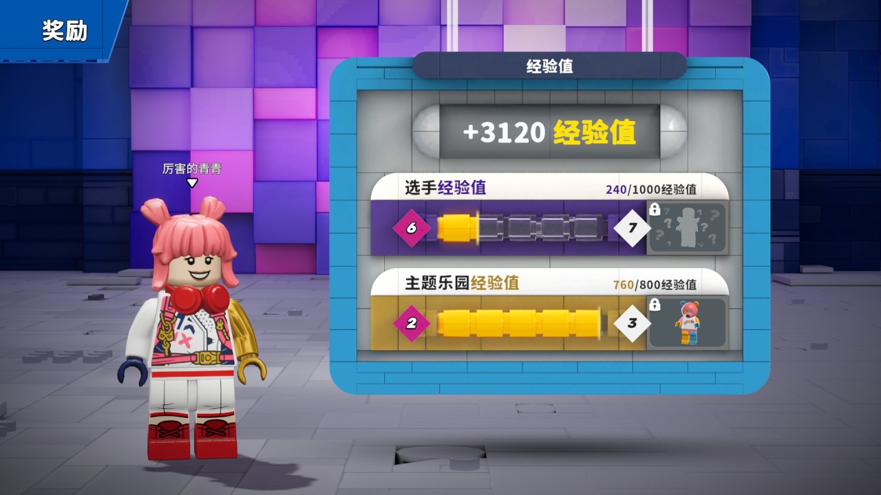 每次游戏过后都可以获取经验值,来解锁等级奖励中的形象与货币,并在各个部位的乐高配件中对乐高小人形象进行diy。