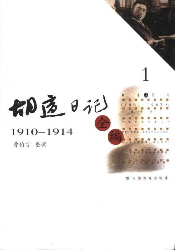 根据胡适的生平,他在1910去往美国留学。正好《胡适日记全编》第一部的时间就是1910-1914,其中收录了《藏晖室日记》和《胡适留学日记》,两部主要记录于胡适学生时代的日记。