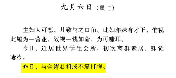 而最后一次提到打牌则是在1911年9月6日,并且在此之后,他真的没有再打过牌(也可能打了没说)。