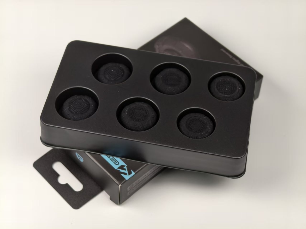 大多數搖桿帽主要都是起保護作用,而這款搖桿帽除了能起到最基本的保護作用之外,還有增強手感的效果。產品一共有六枚三款搖桿帽,分別對應着原生款、格鬥款和射擊款,各種款式都是根據遊戲的類型精心設計,因此對遊戲體驗的提升十分巨大。