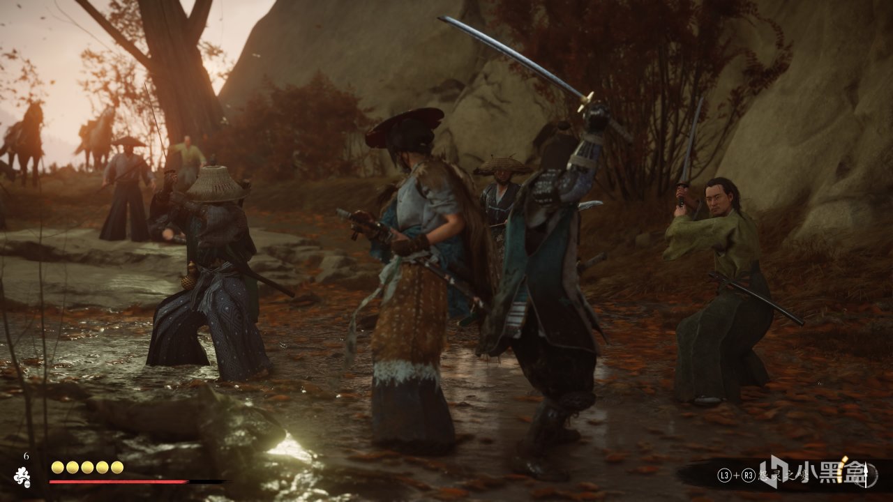 接下來不得不提的則是遊戲整體流暢的體驗了,先從戰鬥入手,本作的戰鬥系統,相對更加困難,不像其他傳統act一樣,幾乎有着一套rpg般的升級流程,玩家會在數值層面上越變越強,雖然不可否認本作依舊有數值成長的元素,但在《羊蹄山》中,隨着時間變強的遠遠不只是屏幕中的篤,還有屏幕外的玩家。在遊戲裏,玩家失去了“鎖定”手段,戰鬥過程變得更加“真實”,玩家不得不在同一時間面對大量虎視眈眈的敵人,時刻提防來自任何方向的攻擊,又同時需要伺機而動,攻擊任何角度膽敢進犯的敵人。