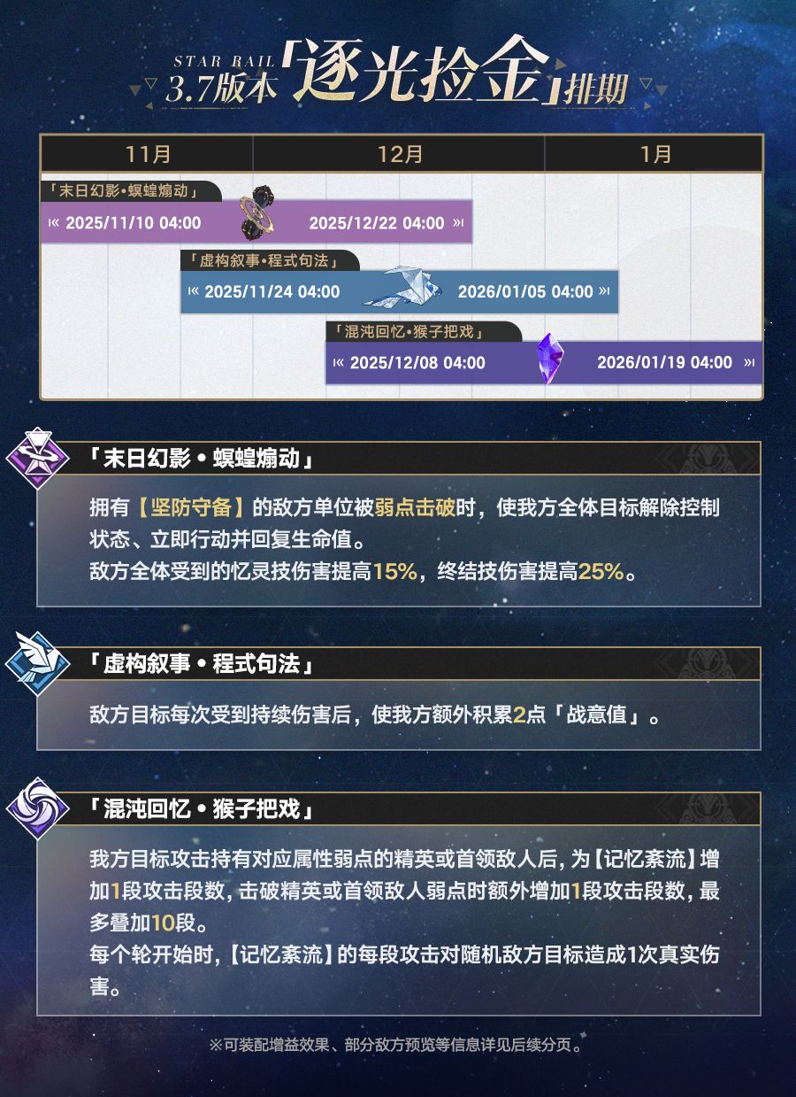星穹铁道3.7版本的「逐光捡金」,每个阶段都有独特机制和策略方向,这里给大家梳理一下核心要点:
