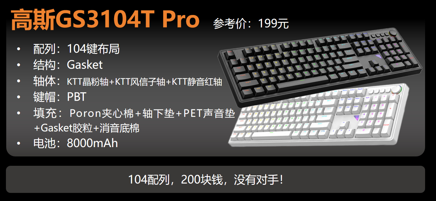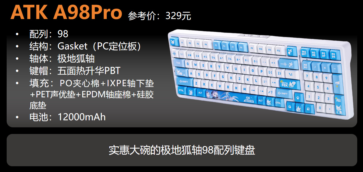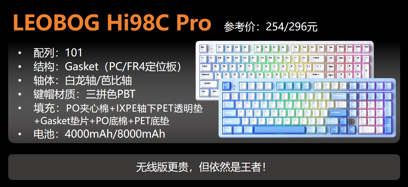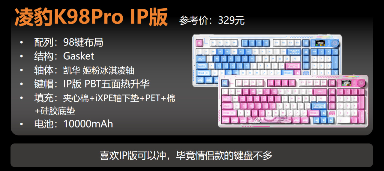 这个键盘更多是打字和打游戏都要,关键是你不习惯98配列, 非要104矮轴,我知道有这种人,如果你是这种人的话,建议直接冲。