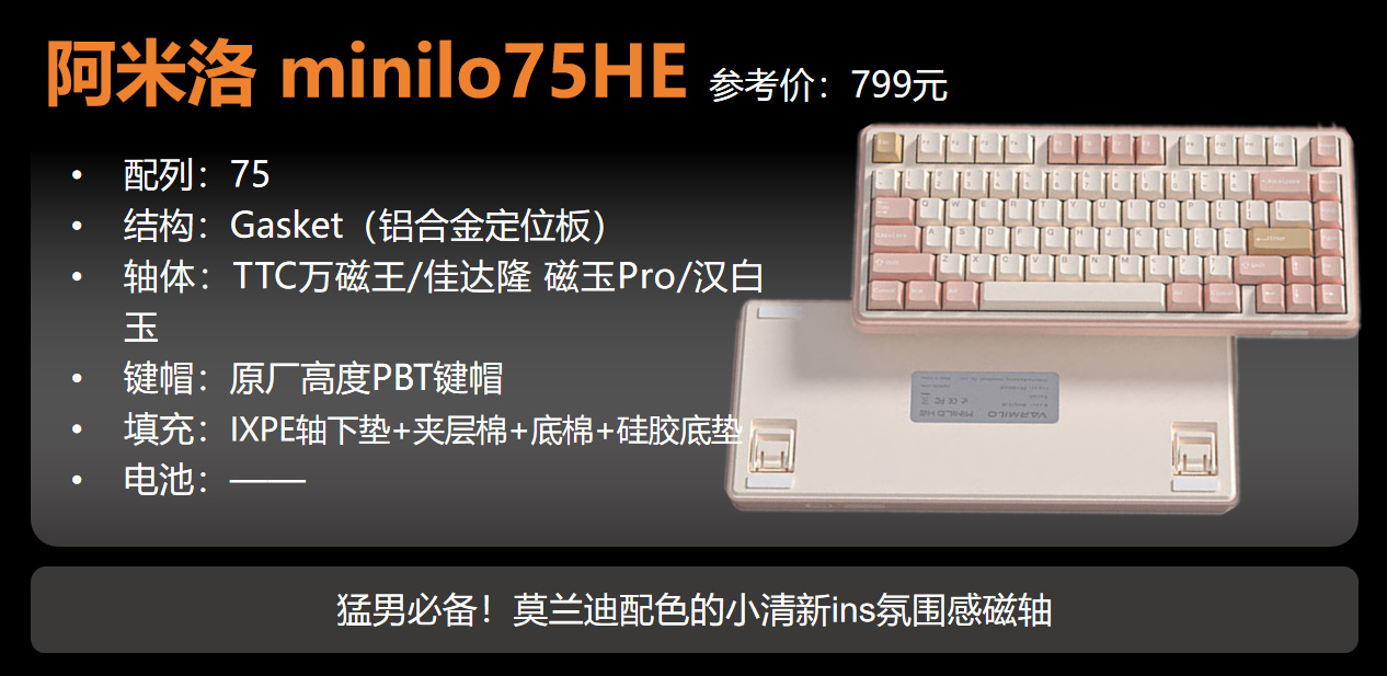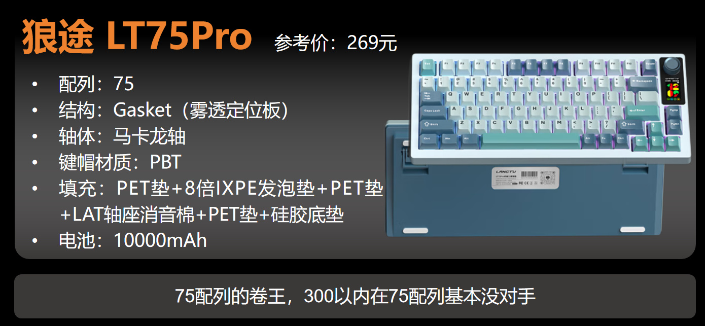 75配列磁轴,还有填充,网页驱动,PBT键帽!!只要126元,你能想象吗?太猛了。