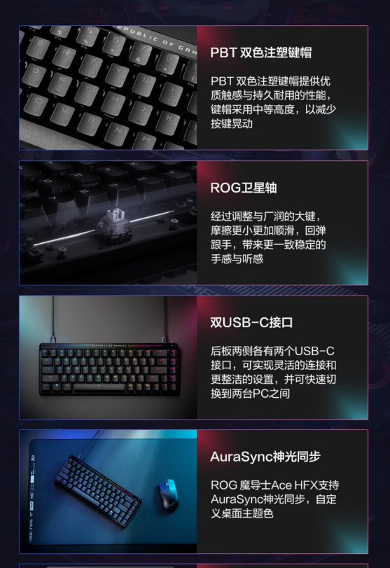 键帽:ROG 双色注塑PBT(高含量PBT)