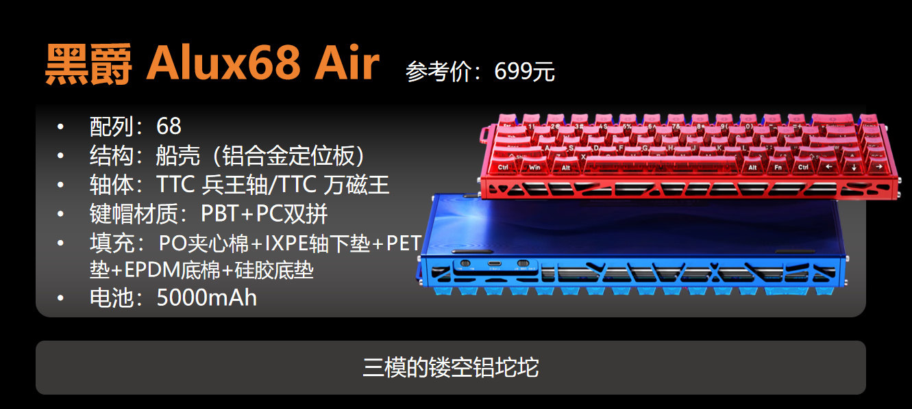 149元的这个低配版下限很高,你能得到5000mAh电池、PBT三拼色键帽,再加上手感不错的赤兔轴,以及五层内部填充。