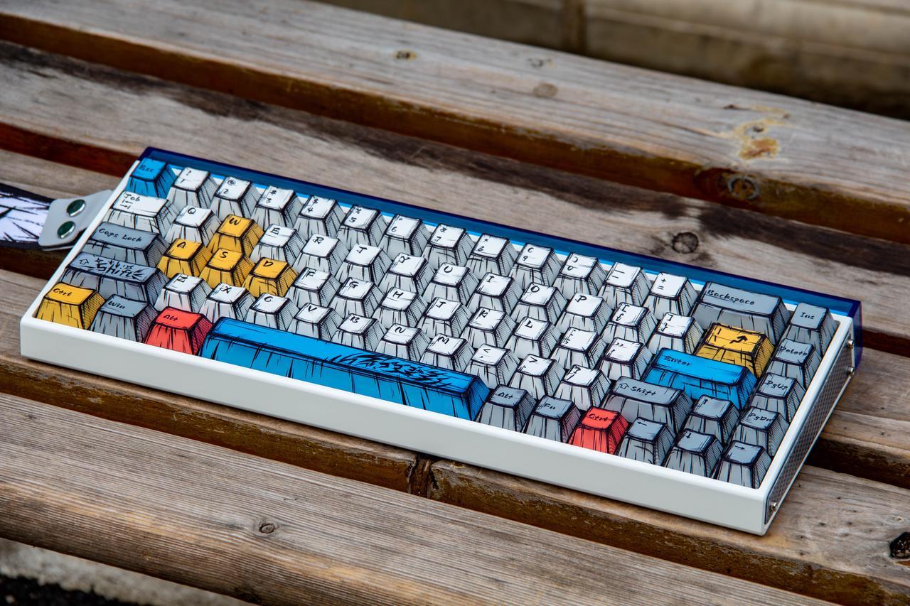 这个键盘是从K5的模具过来的,延续K5v2布局,是65%紧凑配列。同时,外壳加入橙色元素点缀,给外壳做了雾面透光效果,兼顾颜值和氛围感。