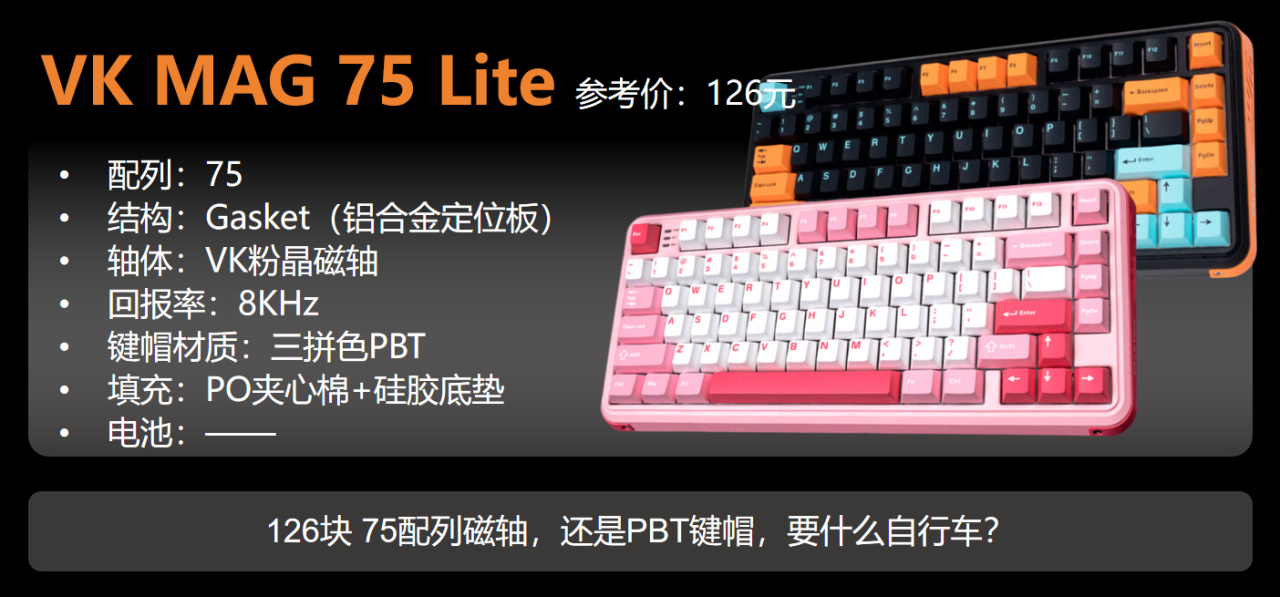 之前我还真没太留意,VK MAG 75居然有个Lite版本,一看配置,直呼我淦!