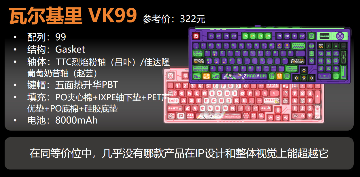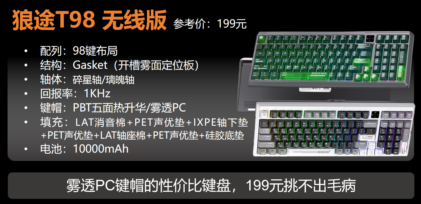 可以说,同价位的98配列三模键盘里,几乎没谁能打得过它。