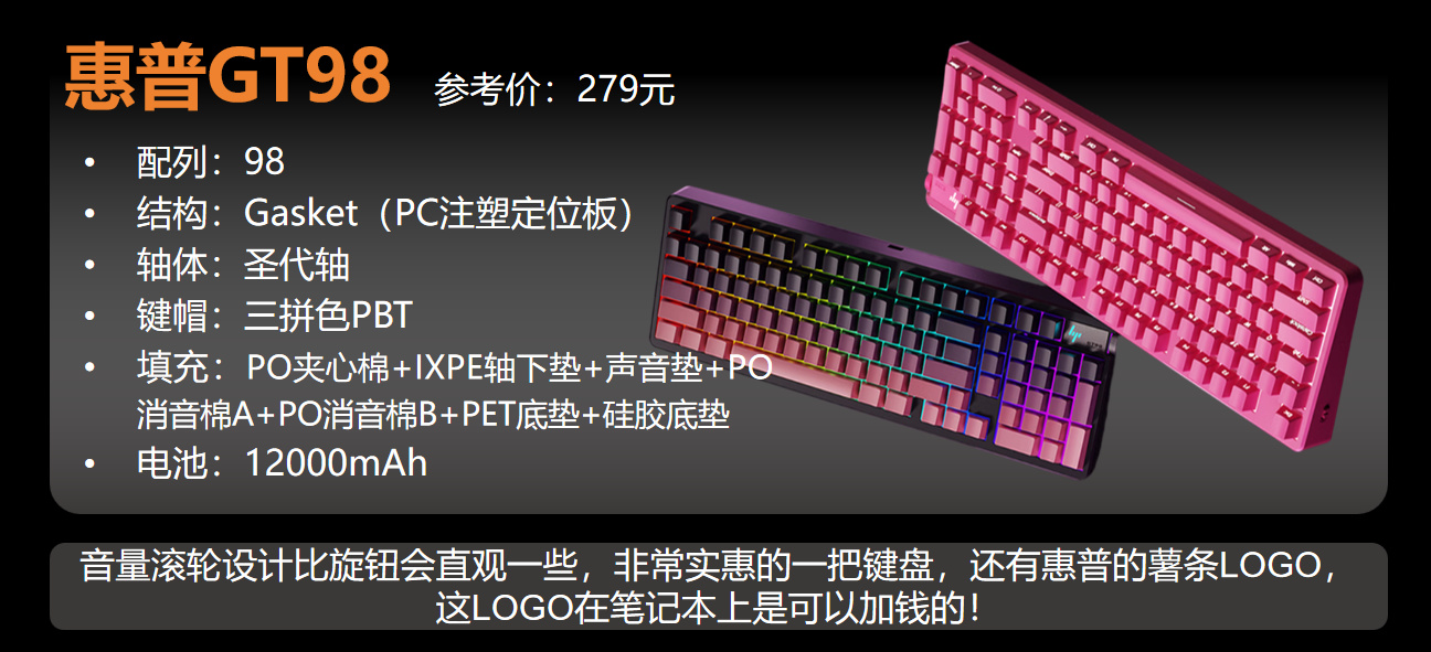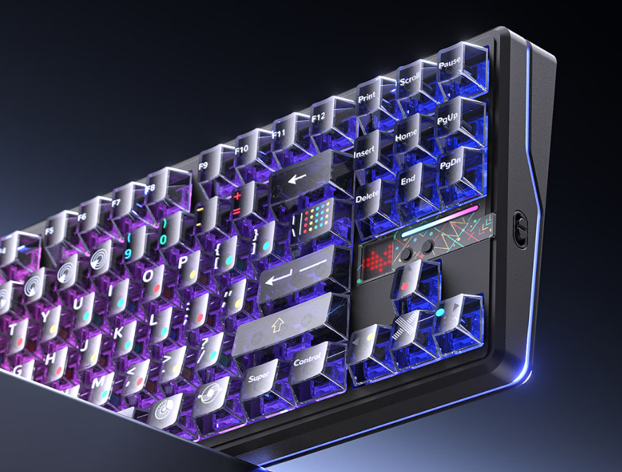 但它在99元这个价位,却给了你一块显示Logo的小屏幕,加上实体音量旋钮、Gasket填充、全键热插拔、白色背光,以及手感还不错的轴体。