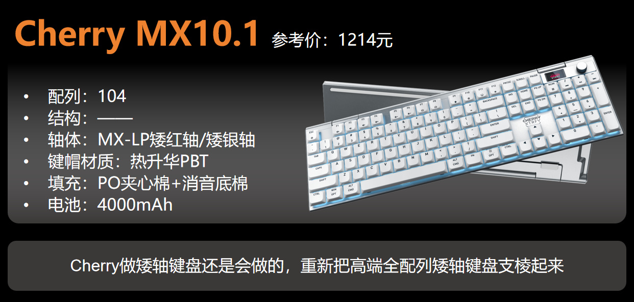 10.1其实就是MX8.3的设计语言,依然是 铝合金一体化壳子+无极转轴替代脚撑,变成104配列和矮轴。
