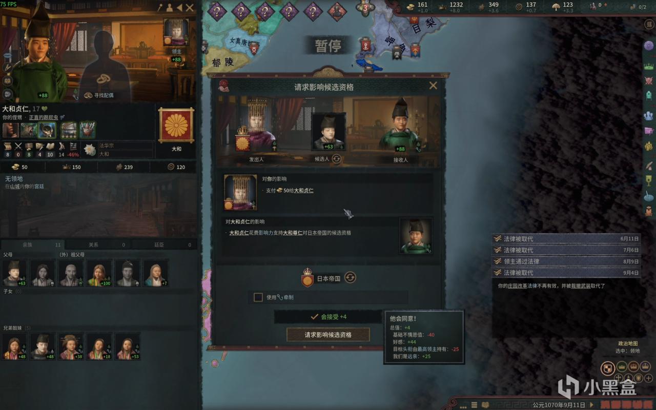 之後進遊戲,先找自己的兄弟請求日本帝國的影響候選力支持 ,好感度高,基本必給你