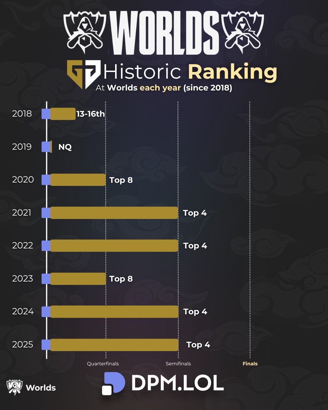 这是GEN.G第七次倒在追逐奖的道路上,并且连续四年以头号种子身份