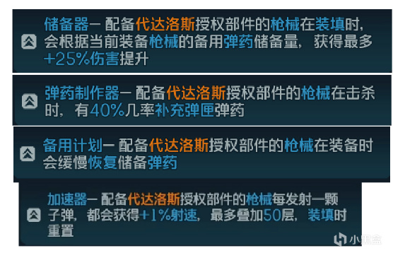 代达洛斯枪械主打一个易用可靠和换弹迅速性,其武器库涵盖突击步枪、霰弹枪、手枪和冲锋枪等多种类型,并且有着多种弹药。