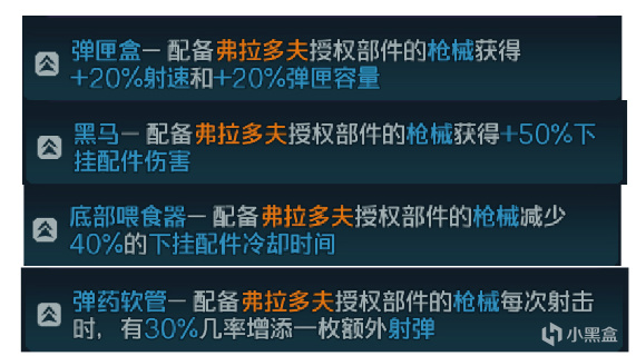 弗拉多夫的武器以高射速和大容量弹夹为标志,能在短时间内将敌人撕成碎片,但代价是精准度较低、手感偏重,需要玩家具备一定控枪技巧。